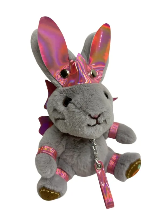 Зайчик- фея попал в сладкий плен, поэтому на его шее красуется ошейник с поводочком, который не дает фее упархнуть от своего хозяина. Но крылышки все еще напоминают о его волшебной сути. Пристегните фею к своей второй половинке, чтобы она всегда была рядом! Игрушка оснащена карабином и кольцом, её можно носить в качестве брелока на ключах или сумке. Высота зайчика 18 см, очень удобный размер. Костюмчик выполнен из розовой голографической эко-кожи. Цвет зайчиков в ассортименте.