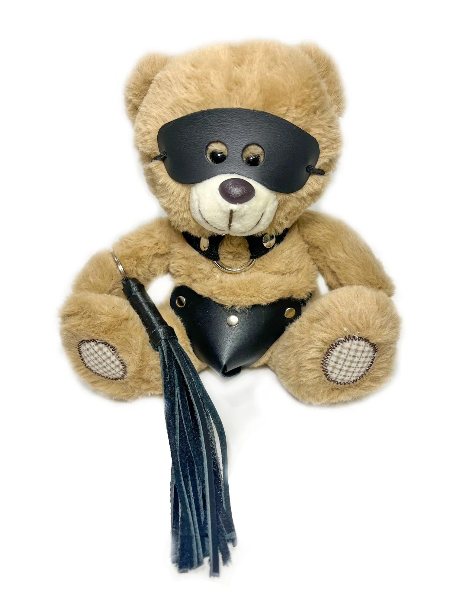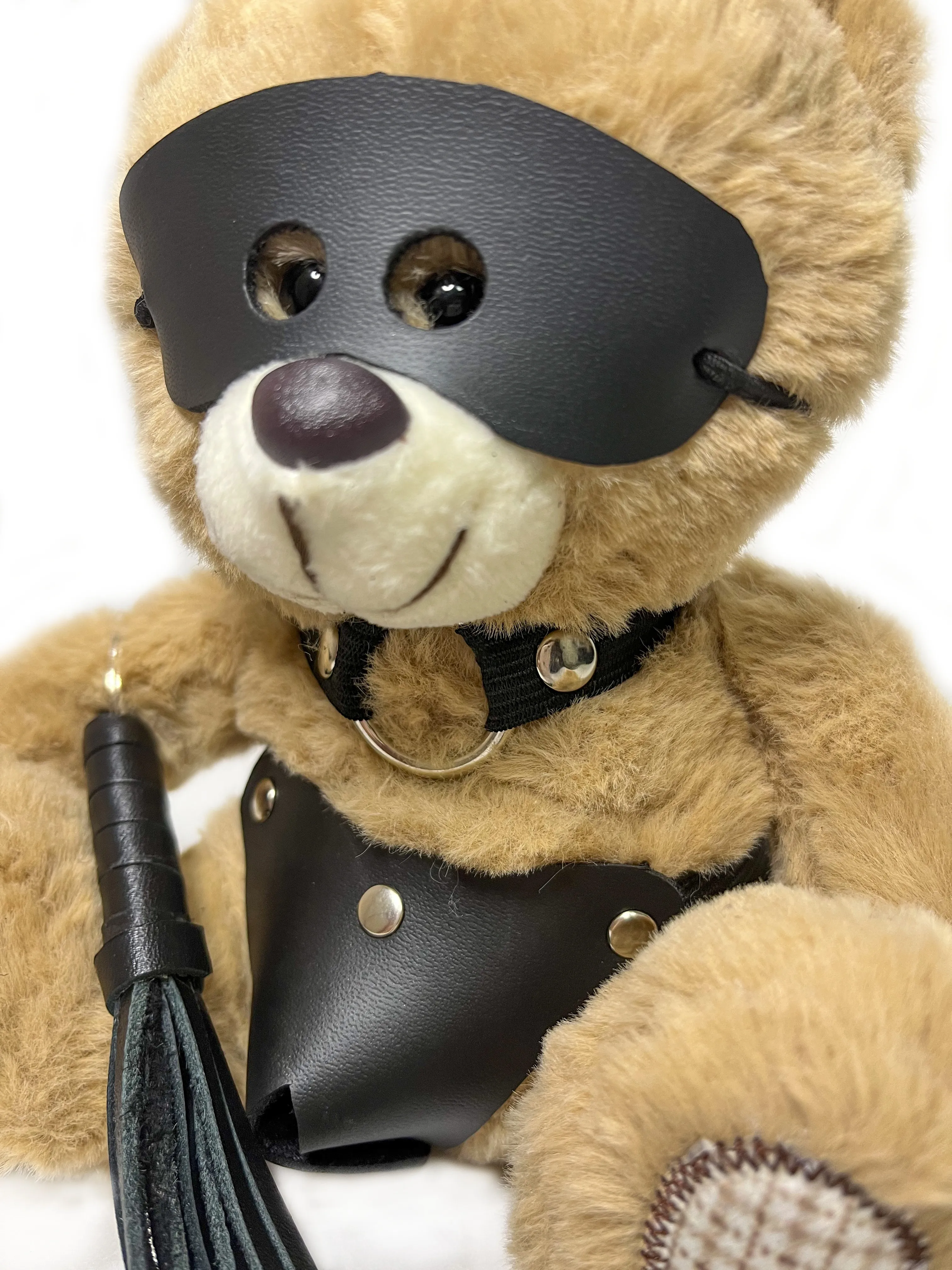 Миниатюрный БДСМ Мишка в очень интересном образе. Великолепная идея для подарка или оригинального элемента в интерьере. Этот малыш сразит Вас своим обаянием! Деталь, заслуживающая отельного внимания - плеть, которая является самостоятельным брелком, ее можно повесить на сумку, на ключи или любой другой аксессуар по Вашему желанию. Высота медвежонка 20см. Костюмчик выполнен из искусственной кожи. Цвет мишек серый