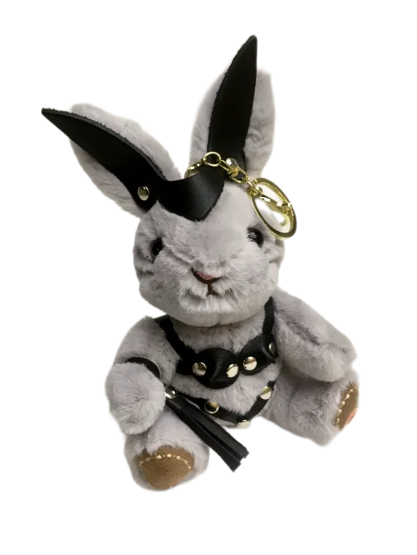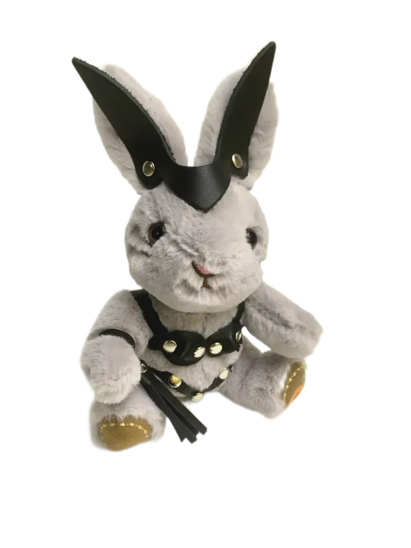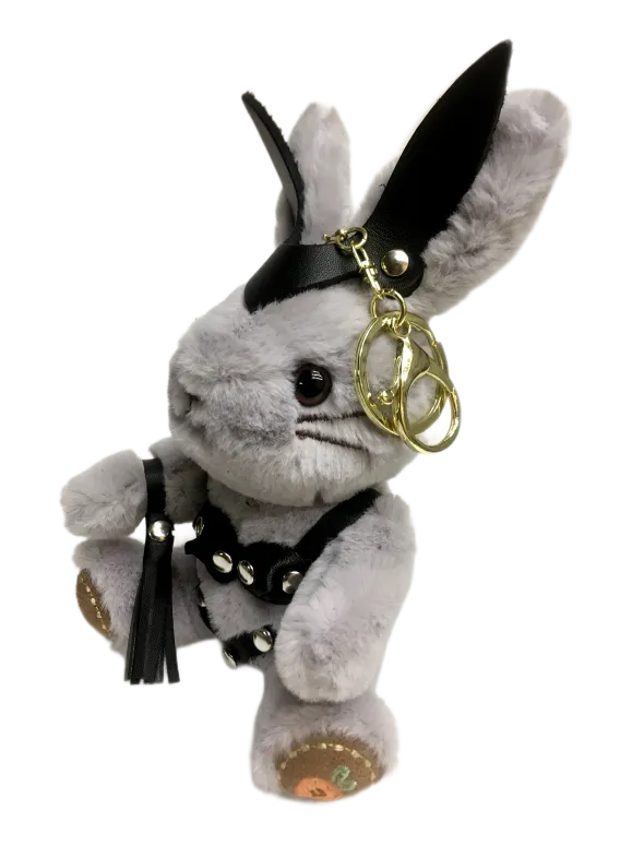Госпожа зайчиха с плеточкой в стрингах и лифе украсит интерьер спальни, где зачастую бывает ооочень жарко. Плеть снимается и может служить отдельным аксессуаром, например, украсит ключ от машины. Игрушка оснащена карабином и кольцом, ее можно носить в качестве брелока на ключах или сумке. Высота зайчика 18 см, очень удобный размер. Костюмчик выполнен из натуральной кожи.