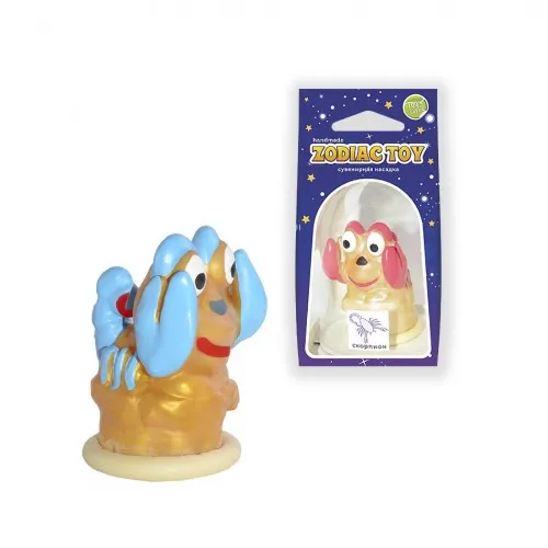 Это изделие ручной работы, которое подарит отличное настроение и массу идей для ролевых игр. Оригинальные и яркие сувенирные насадки привнесут эмоциональных красок в сексуальные отношения. Изделие полностью изготовлено из гиппоаллергенного натурального латекса и имитирует форму презерватива. Верхняя часть секс-игрушки выполнена в виде каркасной, но эластичной фигурки зодиака.Для росписи сувенирной насадки используется специальная эластичная краска, которая отлично держится на поверхности изделия, не отслаиваясь. Диаметр: 35-40 мм