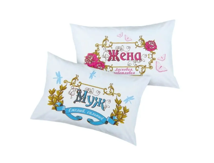 Уникальные парные наволочки "Муж и жена" от компании Сима Ленд идеально подойдут к любым имеющимся у Вас подушкам соответствующего размера. Интересная идея оформления наволочек подарит яркие эмоции и истинное наслаждение во время отдыха. Яркость и насыщенность оттенков выдержат множество стирок и останутся такими, как в первые дни использования. Приятный на ощупь материал исключит проявление какого-либо раздражения, аллергической реакции или дискомфорта.