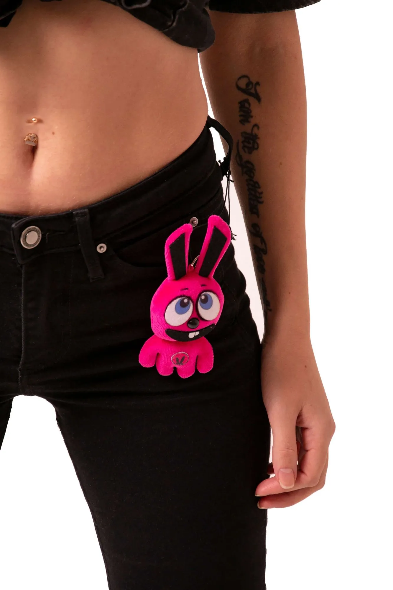 Брелок в виде розового кролика с нашим фирменным логотипом на животе - это стильный и одновременно очаровательный аксессуар, который будет напоминать Вам о любимом магазине.