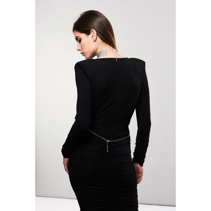 Элегантное колье Desir Metallique от бренда Bijoux Indiscrets - это необычный аксессуар, который можно использовать и как изысканное украшение, и как ошейник. Две цепочки проходят по линии груди и застегиваются на спине, а третья может использоваться в качестве поводка во время ролевых игр, однако при желании ее можно снять.