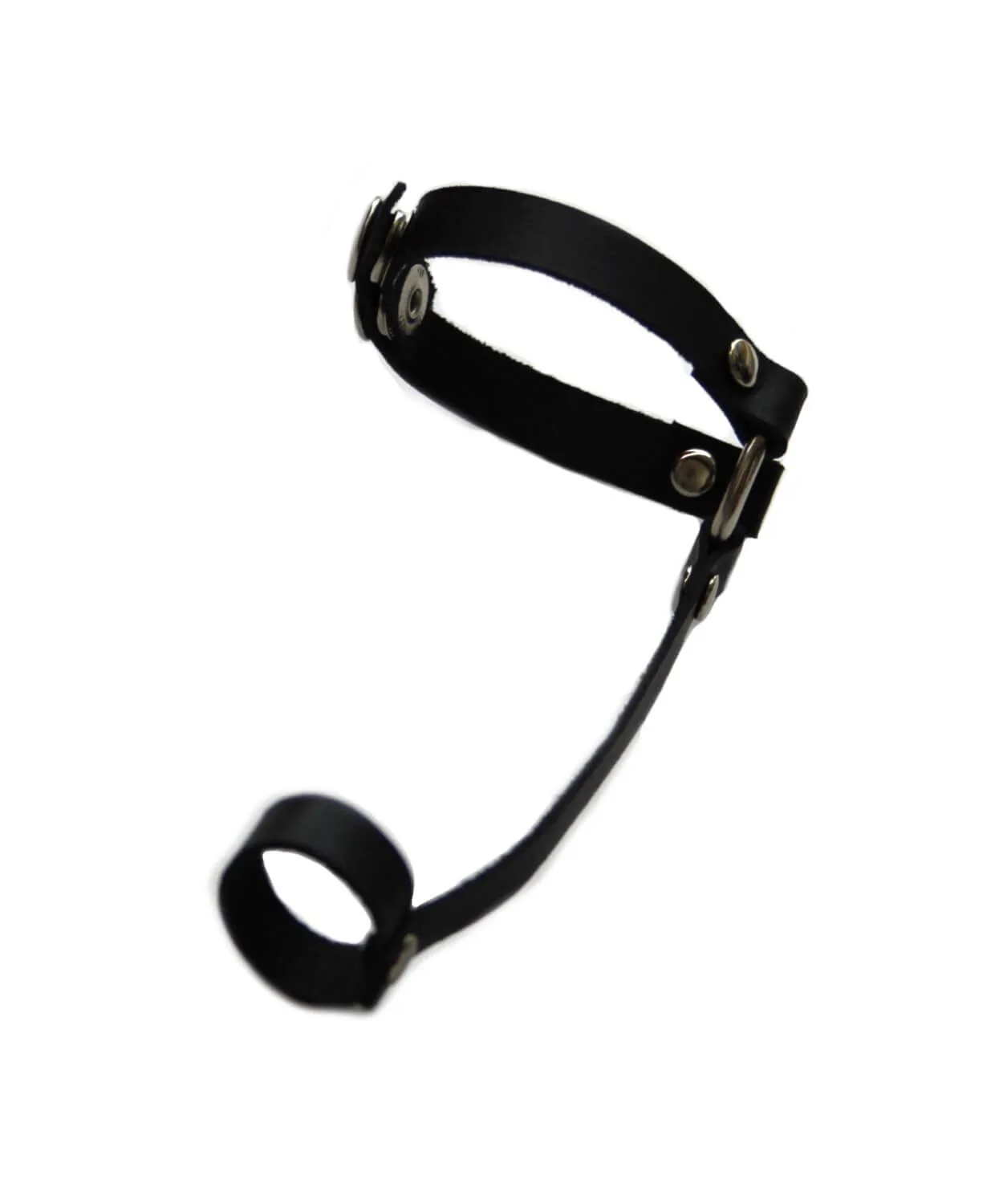 Браслет выполнен из натуральной кожи черного цвета. Он надевается на запястье и палец, застегивается на кнопки.