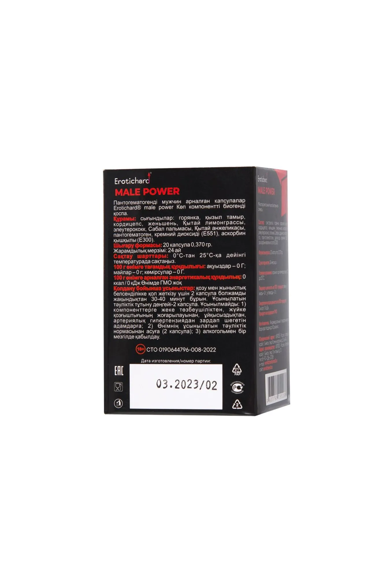 Биогенный комплекс растительных экстрактов Erotichard® male power в капсулах с пантогематогеном – это натуральный, негормональный продукт, направленный на нормализацию работы мужской репродуктивной системы.