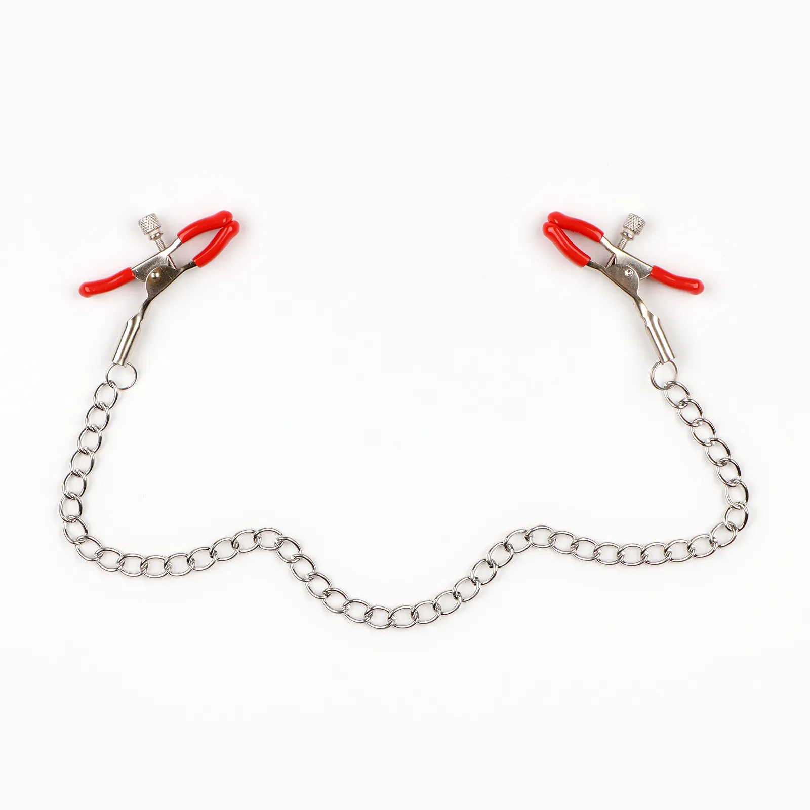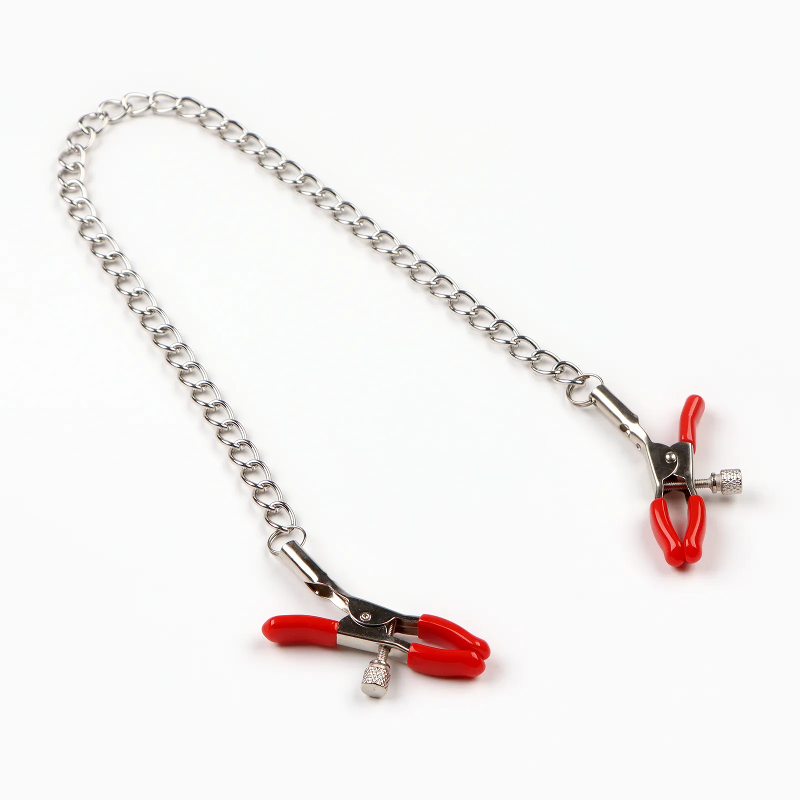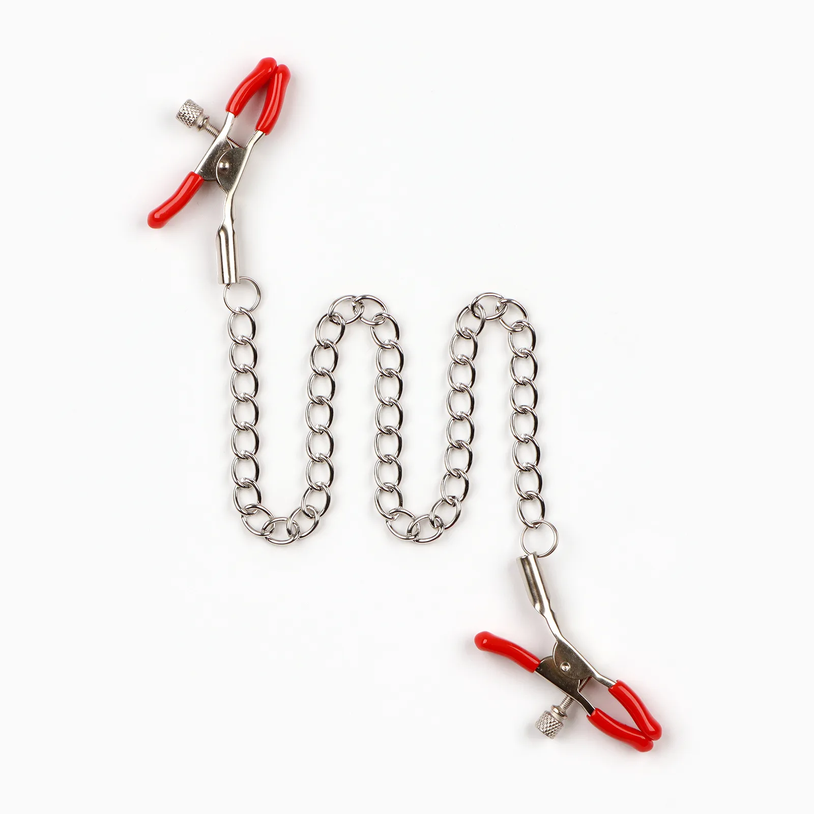 Зажимы для сосков и клитора изготовлены из алюминия, изделие имеет пластиковые наконечники. Длинная цепь позволяет одновременно использовать зажимы для сосков и клитора. Соединяющая цепочка является не только красивым дополнением, но и позволяет оттягивать и вращать соски для получения дополнительных приятных ощущений. Можно использовать как самостоятельный стимулятор, а также как дополнение к прелюдии и сексу.