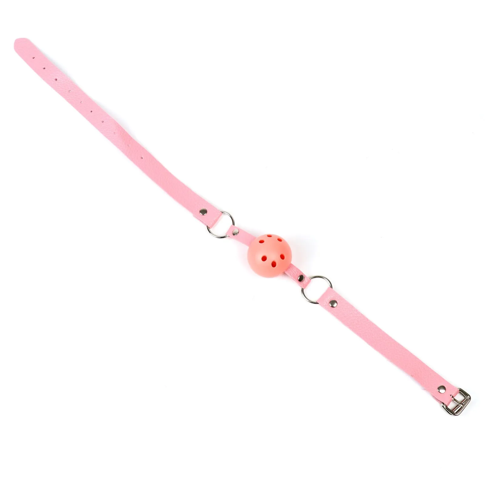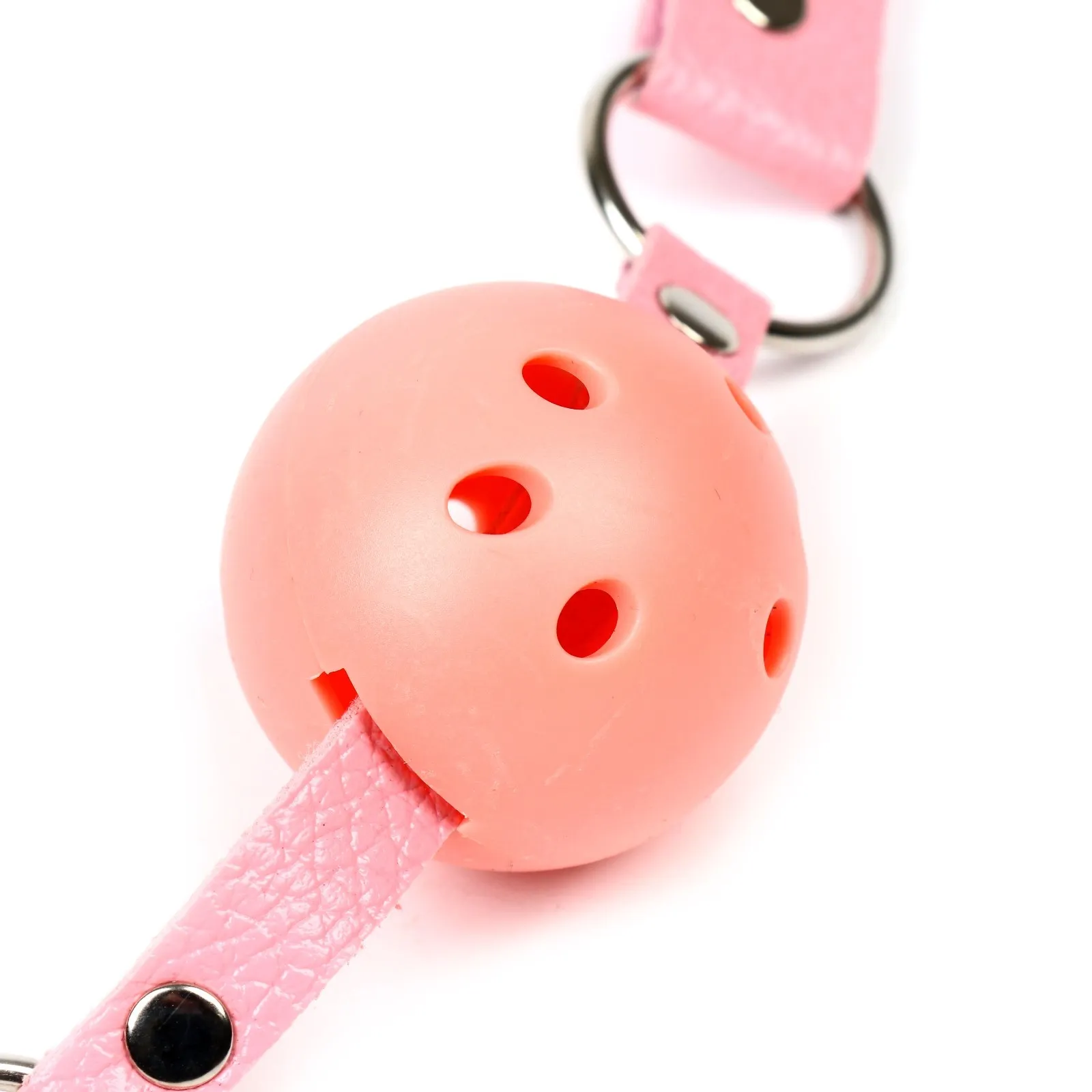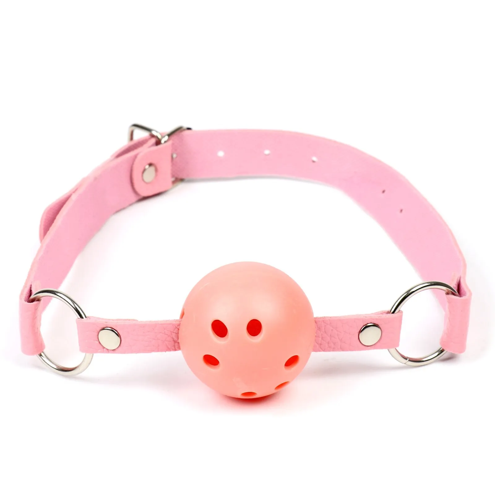 Кляп выполнен из эко-кожи и abs пластика Шарик имеет оптимальный размер, хорошо помещается в рот, а ремешок имеет систему регулировки, так что он подойдет и для нее и для него. Перед использованием необходимо помыть игрушку под проточной водой, далее обработать специальным спреем -клинером.