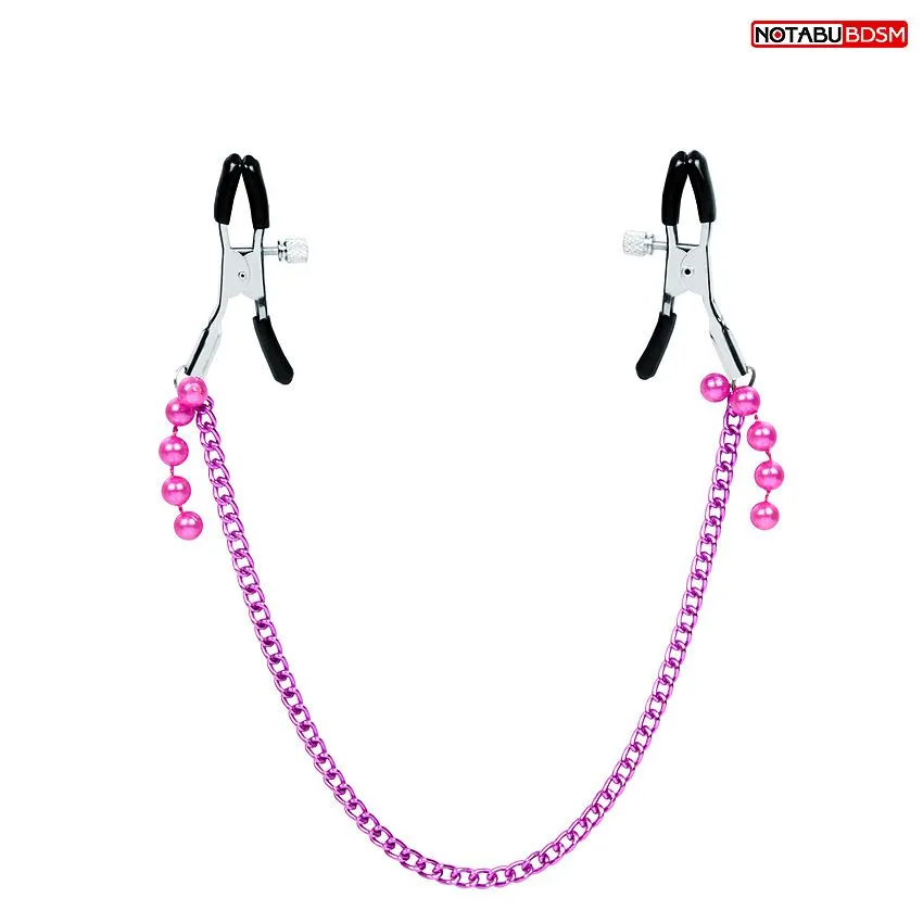 Зажимы соединены лёгкой металлической цепочкой из бусин, которая даёт эффект утяжеления. На каждом изделии предусмотрен регулировочный винт, позволяющий контролировать силу сдавливания сосков. Интимные аксессуары могут использоваться соло или для парных любовных игр.