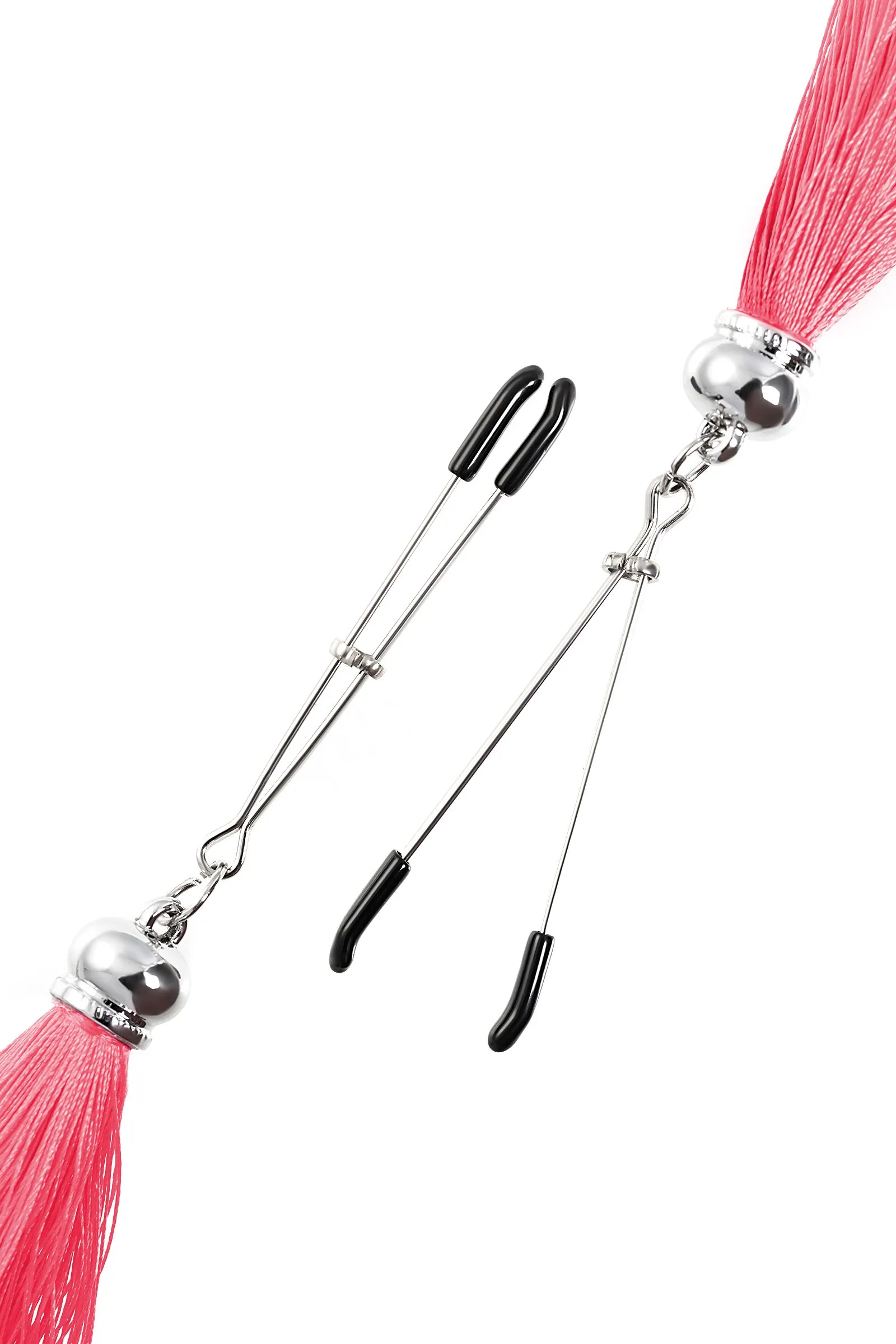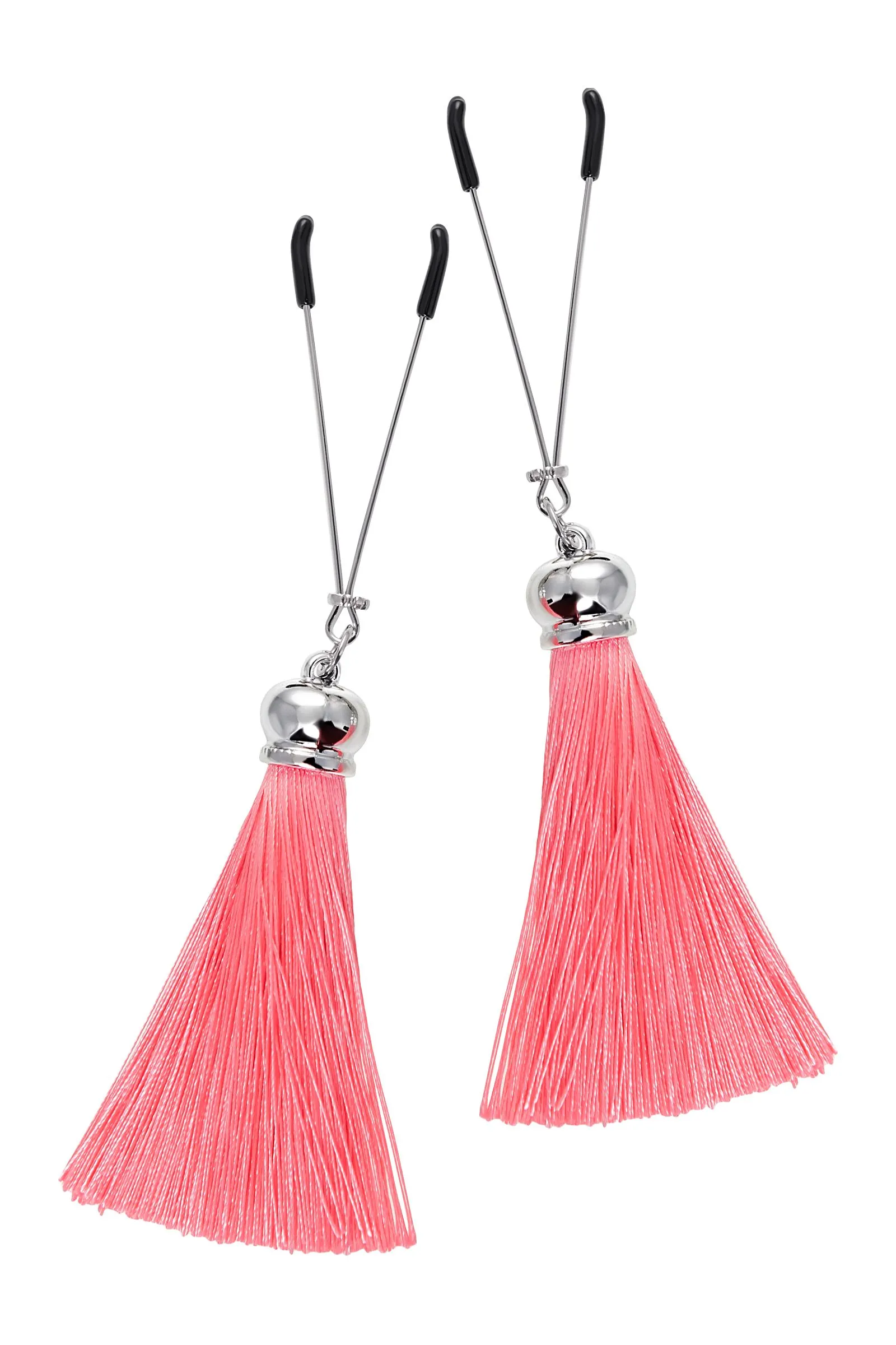 Попробуйте новые, дерзкие ощущения глубокого наслаждения! Зажимы-вилки от Pecado гарантируют смешение ярких чувств от тактильного контакта с нежной кожей сосков. Зажимы выполнены из высококачественных материалов. Металлическая часть компактная, приятная на ощупь. На концах черные резиновые наконечники, для безопасного воздействия на эрогенные зоны. Интенсивность сжатия аксессуара регулируется миниатюрными колечками. В зависимости от личных предпочтений и сценария игры, можно выбрать легкое пощипывание, или сильное сдавливание. Бахрома из натурального шелка, в насыщенном озовом цвете, добавляет манящую красоту смелому атрибуту. При каждом соблазнительном покачивании груди, кисточки движутся в пикантном ритме. Также подходит для стимуляции и возбуждении в области половых губ и клитора. ● Ручная работа. ● Надежная высококачественная фурнитура. ● Не требуют специального ухода.