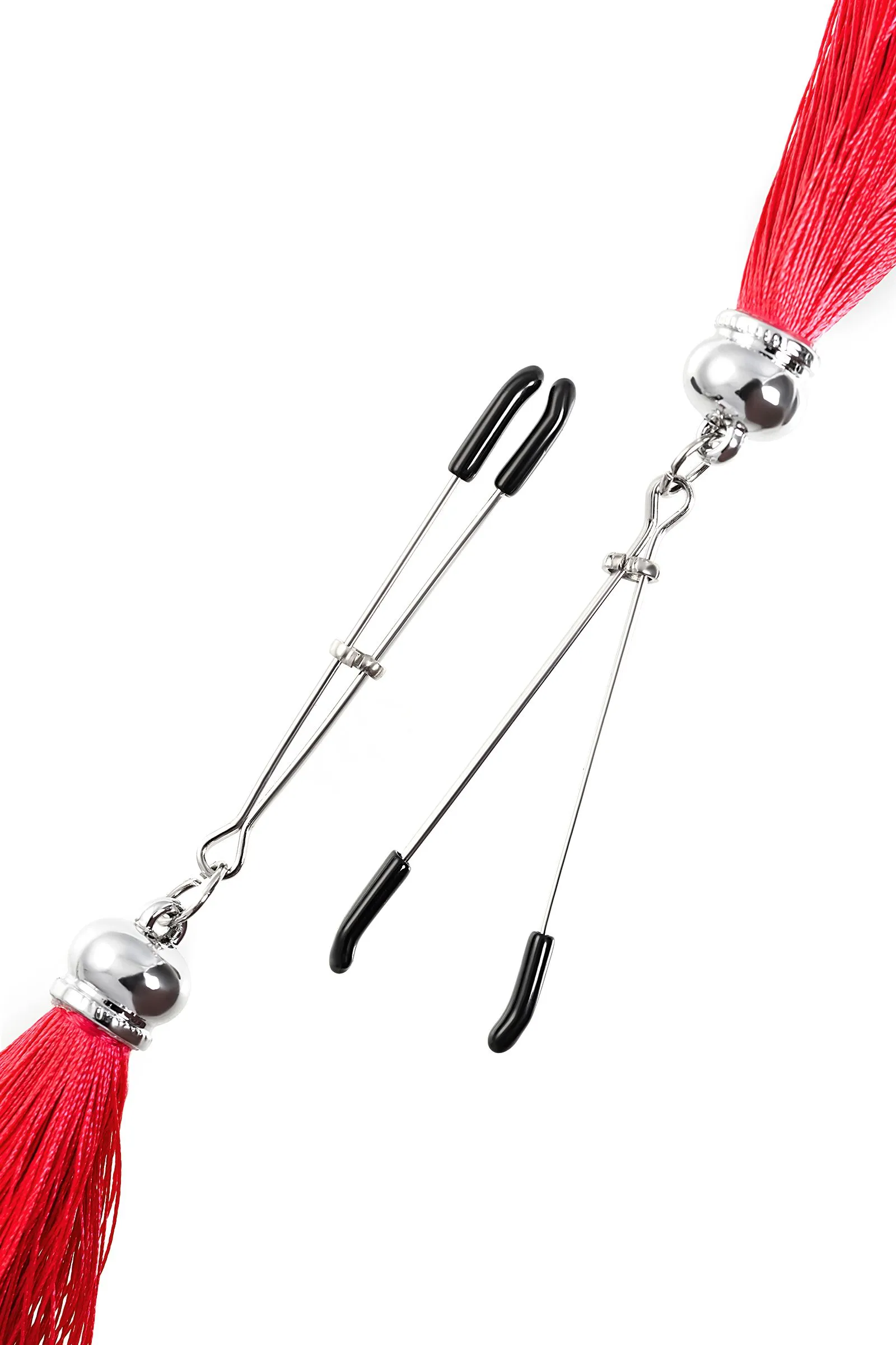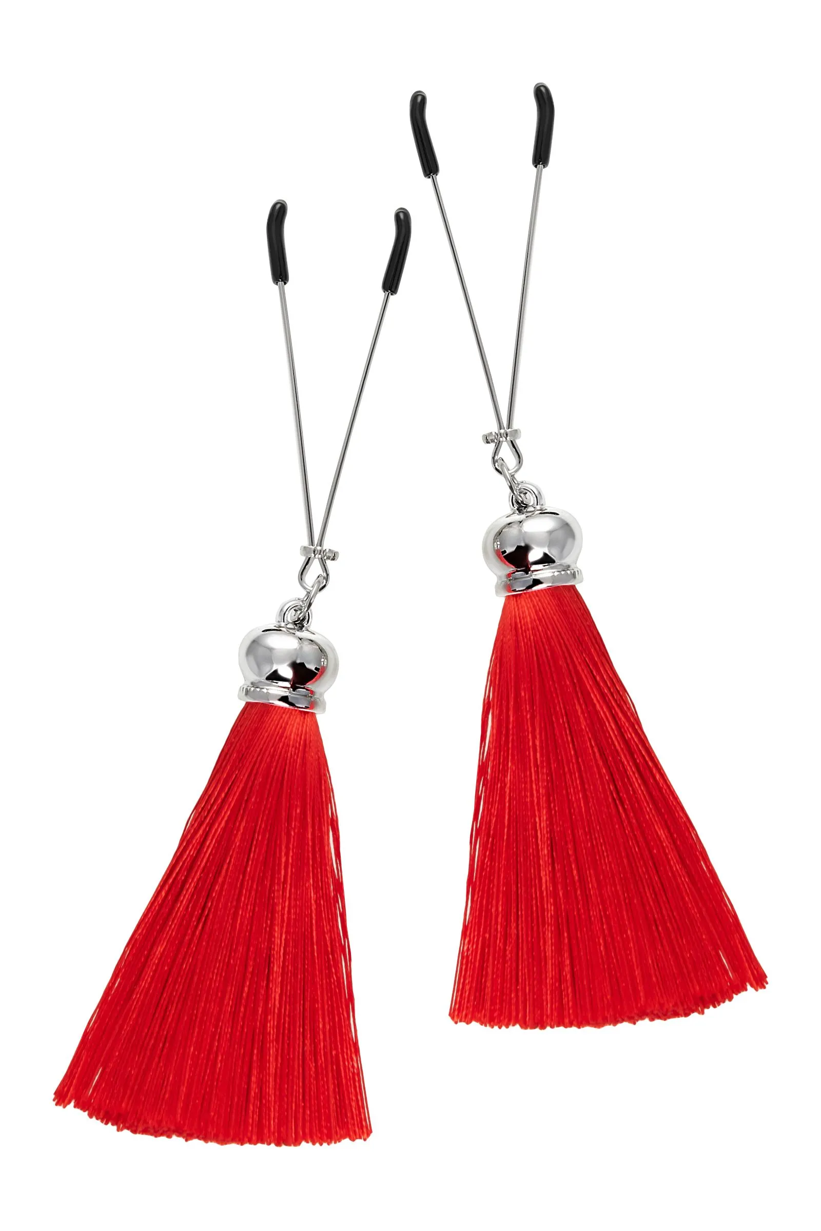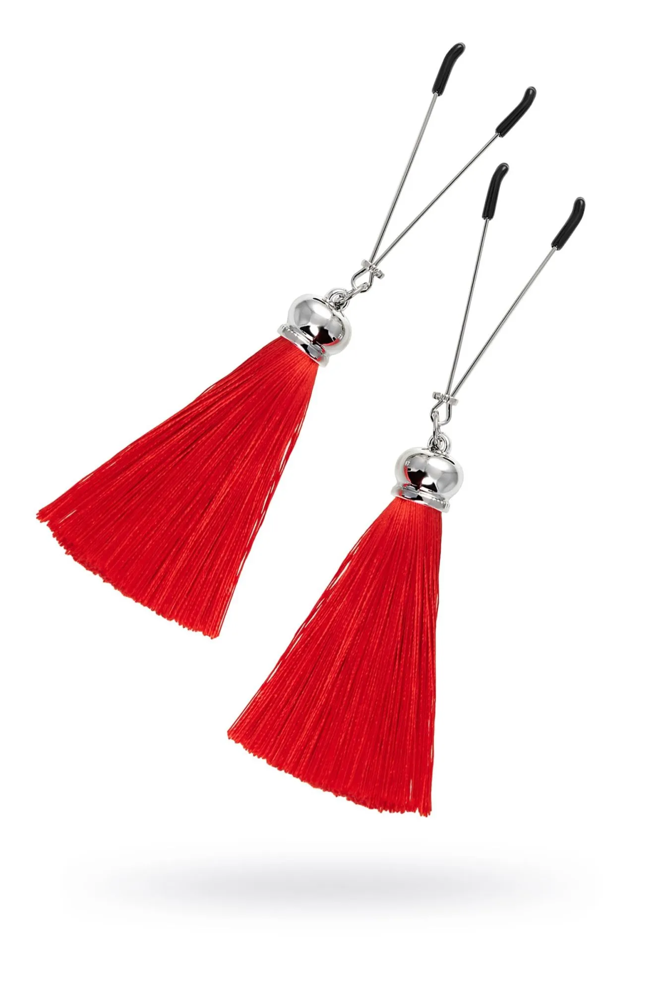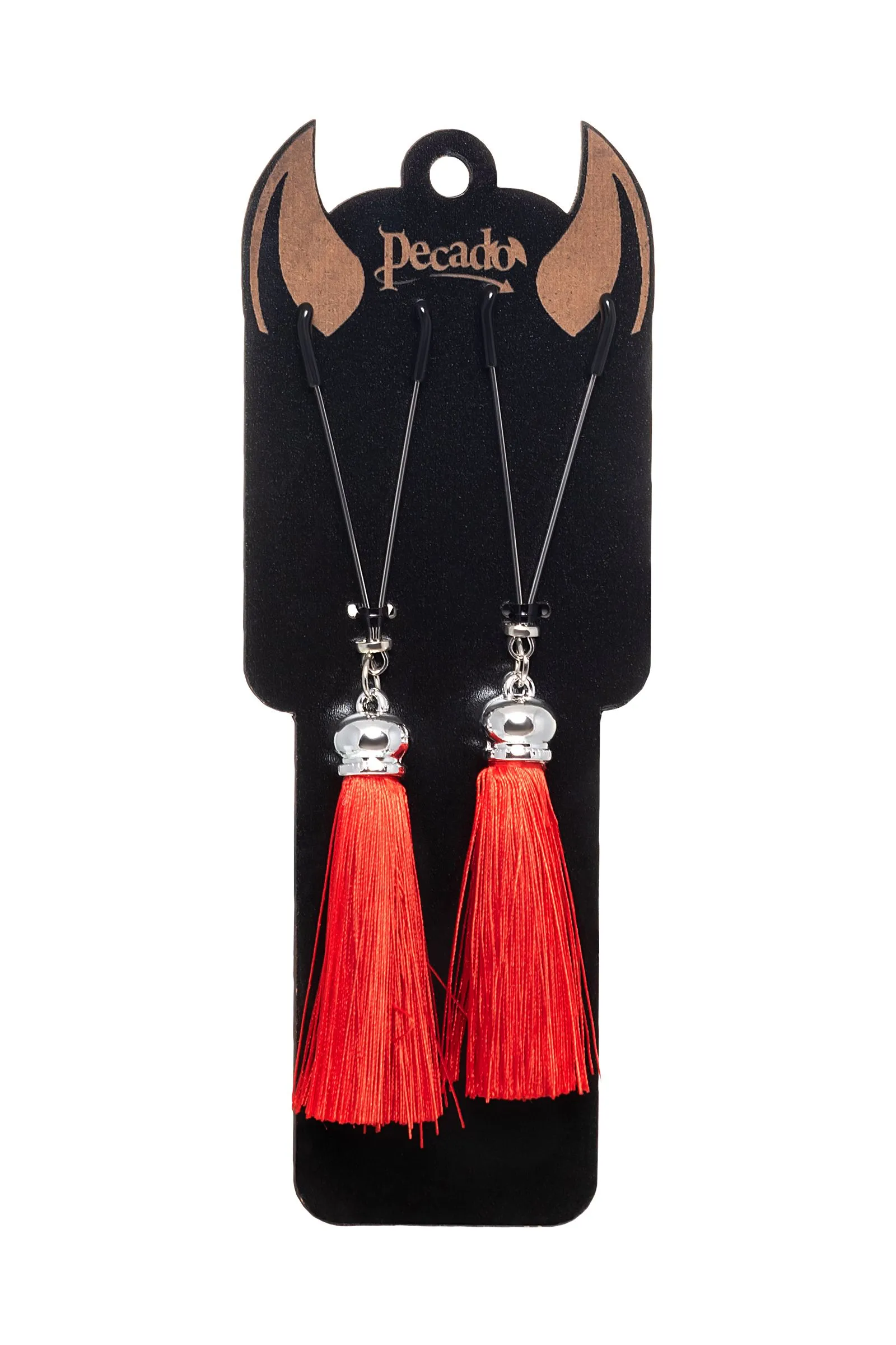 Попробуйте новые, дерзкие ощущения глубокого наслаждения! Зажимы-вилки от Pecado гарантируют смешение ярких чувств от тактильного контакта с нежной кожей сосков. Зажимы выполнены из высококачественных материалов. Металлическая часть компактная, приятная на ощупь. На концах черные резиновые наконечники, для безопасного воздействия на эрогенные зоны. Интенсивность сжатия аксессуара регулируется миниатюрными колечками. В зависимости от личных предпочтений и сценария игры, можно выбрать легкое пощипывание, или сильное сдавливание. Бахрома из натурального шелка, в насыщенном красном цвете, добавляет манящую красоту смелому атрибуту. При каждом соблазнительном покачивании груди, кисточки движутся в пикантном ритме. Также подходит для стимуляции и возбуждении в области половых губ и клитора. ● Ручная работа. ● Надежная высококачественная фурнитура. ● Не требуют специального ухода.