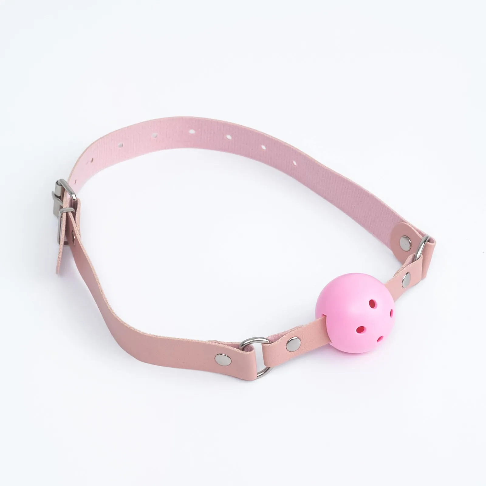 Кляп выполнен из эко-кожи и abs пластика. Шарик имеет оптимальный размер, хорошо помещается в рот, а ремешок имеет систему регулировки, так что он подойдет и для нее и для него.