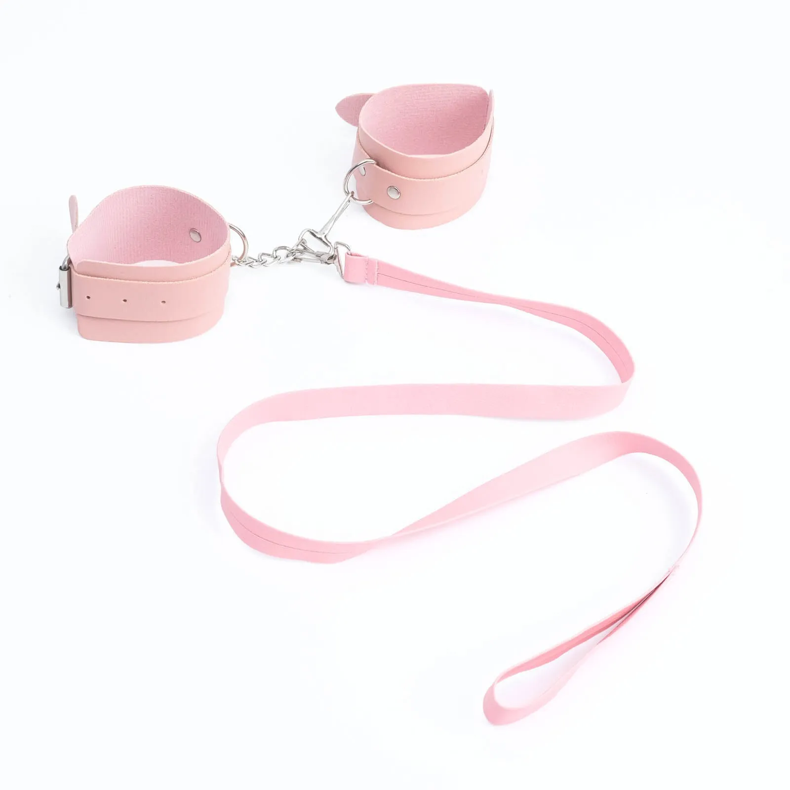 Наручники и ошейник с мягкой вставкой, которая обеспечит приятное прилегание к телу. Поводок крепится к ошейнику при помощи карабина, имеет длину 103 см.