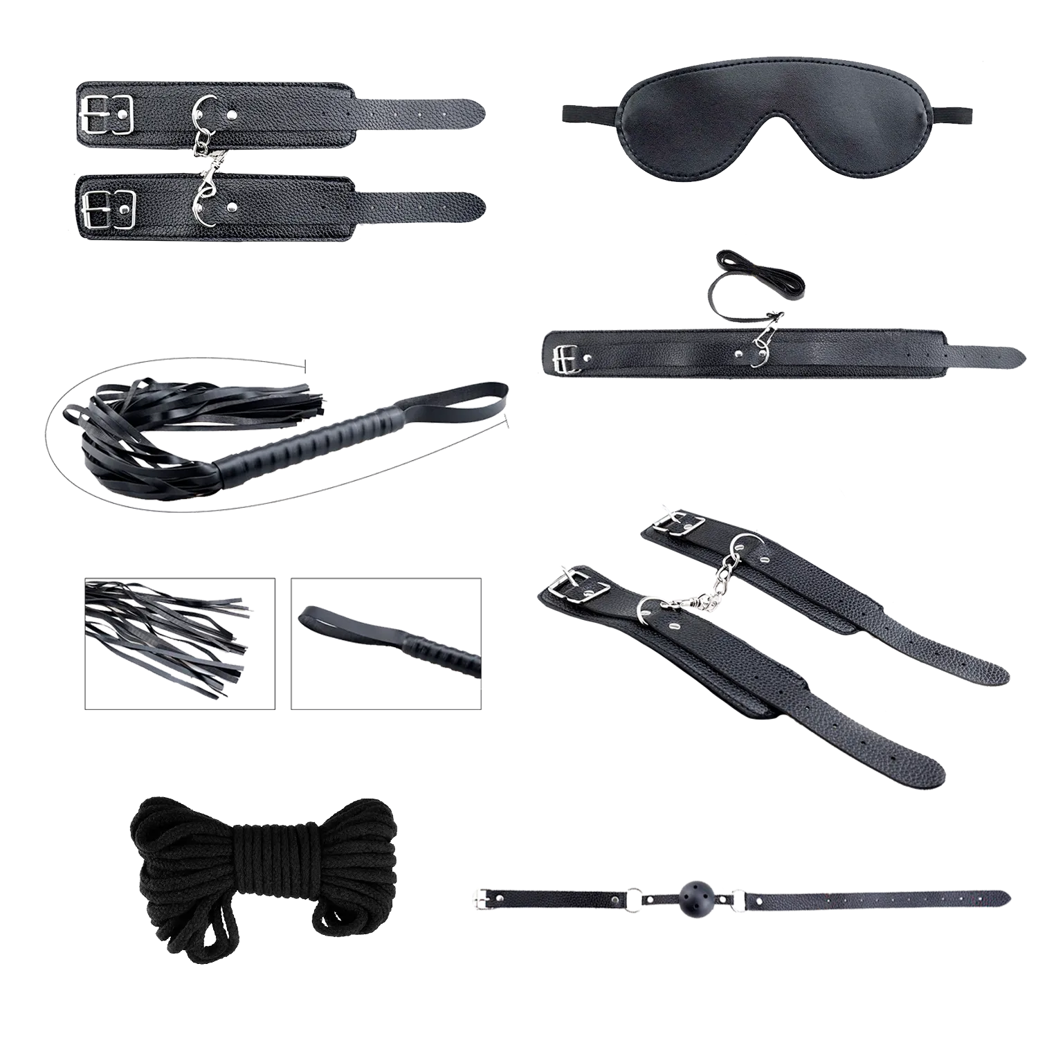 Secret Desires — набор из 8 БДСМ-аксессуаров, включающий наручники, ножные кандалы, ошейник с поводком, кляп, плеть, маску и веревку шибари, создан для парных экспериментов. Вес набора — 385 г, что обеспечивает компактность и удобство хранения. Прочные и безопасные материалы гарантируют надежность при использовании. Цвет — черный. Это идеальный старт для знакомства с БДСМ благодаря простоте применения, набор подойдет как новичкам, так и опытным пользователям.