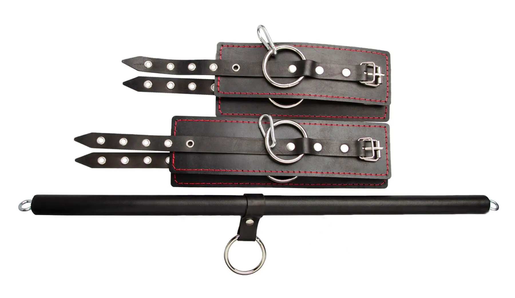 Набор для бондажа от бренда Pink Rabbit состоит из большой распорки, наручников и оков. Такой набор позволит зафиксировать своего партнера в нужной Вам позе и получить над ним полный контроль. У распорки есть три металлических кольца, два из которых располагаются на концах и одно посередине. Пристегнув к кольцам наручники и оковы (или другие аксессуары), Вы сможете начать воплощать в жизнь все свои эротические фантазии, экспериментируя с вариантами фиксации своего партнера.