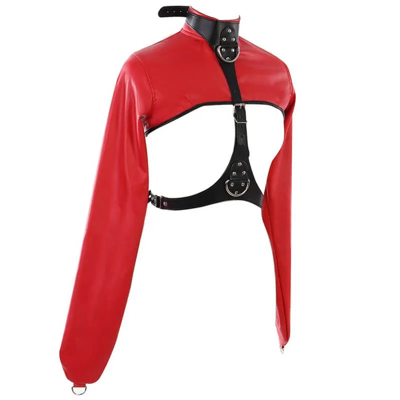 Бондажный комплект от бренда Lapin Rose позволит Вам обездвижить руки своей партнерши и зафиксировать их в нужном положении. На рукавах без отверстий для кистей есть небольшие полукольца, которые можно соединить между собой цепочкой или карабином (в комплект не входят). На ошейнике также есть полукольца более крупного размера, к которым можно присоединить другие бондажные аксессуары, чтобы разнообразить сценарии игры. Размер жакета регулируется при помощи ремешков с пряжками.