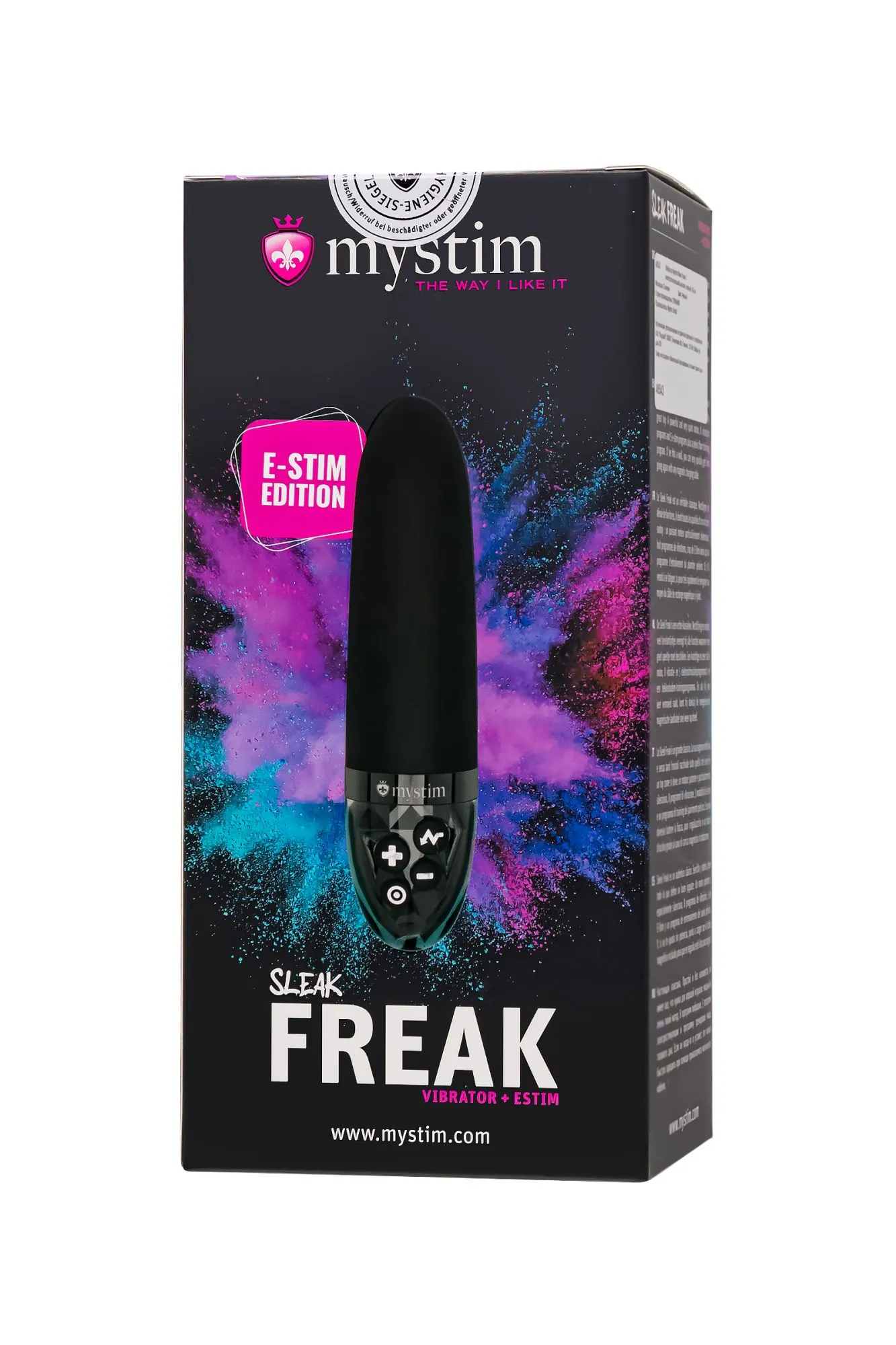 Откройте перед собой врата невероятных ощущений с Mystim Sleak Freak Black Edition! Этот классический вибратор переворачивает понятие удовольствия, объединяя утонченную вибрацию с ошеломляющей электростимуляцией. Перенеситесь в мир нежных, щекочущих покалываний, а затем углубитесь в потрясающе яркие импульсы. Откройте новые грани наслаждения и забудьте о пределах. Этот вибратор обладает не только изысканным дизайном, но и простотой управления. Его прямой кончик идеально подходит для внутренней или внешней стимуляции. С 8 режимами вибрации и 5 скоростями, вы сами создаете рецепт собственного наслаждения. Начните с мягких волн, постепенно переходя к потрясающим пикам интенсивности. Соло-удовольствия или прелюдия с возлюбленным - ваш новый вибратор не ограничивает вас в страстных желаниях. Sleak Freak откроет перед вами мир электро-импульсов, создавая невероятные волны возбуждения. С 5 уникальными режимами и 10 уровнями интенсивности, вы сможете подобрать идеальную комбинацию для себя. Но это ещё не всё — дополнительный 6-й режим предназначен специально для тренировки мышц тазового дна, что не только способствует вашему здоровью, но и улучшает способность к оргазму и делает ощущения во время секса более яркими. Обратите внимание, что электростимуляция имеет некоторые ограничения и не рекомендуется при наличии металлических имплантов, сердечных заболеваний или беременности. Перед покупкой внимательно изучите инструкцию от производителя, чтобы насладиться безопасным и удовлетворительным опытом. Удобный дизайн и компактные размеры делают его идеальным спутником в путешествиях или первой игрушкой для новичков. Мягкий округлый кончик нежно прикасается к чувствительным местечкам, принося настоящее блаженство. Миниатюрные размеры - рабочая длина всего 9,5 см, а максимальный диаметр - 3,6 см. Вибратор сделан из медицинского силикона, гарантируя приятные ощущения и бережное отношение к коже. Элегантный и современный дизайн никого не оставляет равнодушным. Для дополнительного комфорта используйте лубрикант на водной основе. Этот перезаряжаемый мастер удовольствий непроницаем для воды и обладает потрясающей мощью. Не используйте режим электростимуляции в воде. Для зарядки вибратора просто подключите USB-кабель к игрушке. Роскошная ручка-держатель выполнена из прозрачного ABS-пластика и украшена зеркальными элементами. Mystim Sleak Freak Black Edition – это не просто игрушка. Это ключ к миру невероятного удовольствия и здоровья. Узнайте, как быть в гармонии со своим телом, наслаждаясь каждой секундой. Сделайте шаг вперед к новому уровню интимных впечатлений! Блокировка кнопок. Чтобы включить или отключить блокировку кнопок, одновременно нажми и удерживай кнопку вибрации и кнопку «Минус» или «Плюс» в течение 3 секунд. (При этом кнопки несколько раз кратковременно мигнут.) Внимание: новое устройство поставляется с включенной блокировкой кнопок, поэтому перед первым использованием блокировку нужно отключить. 8 программ вибрации и 5 скоростей 5 программ электростимуляции с 10 уровнями интенсивности 1 программа тренировки мышц тазового дна Длина 14,5 см Диаметр 3,6 см Изготовлен из 100 % медицинского платинового силикона. Цвет - глубокий черный Магнитное зарядное устройство Mystim и USB-зарядное устройство в комплекте Время зарядки - 120 мин, время работы - 90 мин.