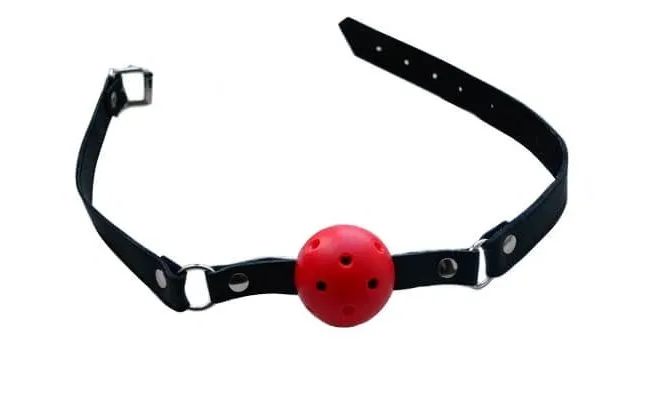 Любите ролевые игры? Тогда Ваш арсенал секс-игрушек обязательно должен пополниться таким кляпом-шариком. Этот БДСМ-аксессуар понравится Вам вне зависимости от того, в какой роли Вы желаете оказаться. Кляп выполнен из пластика и имеет перфорацию для более легкого дыхания. Ремешок кляпа выполнен из натуральной кожи, а размер можно регулировать при помощи застежки-пряжки от 43 до 55 см. Ширина ремня 2 см. Позвольте своим самым жарким желаниям вырваться на волю!