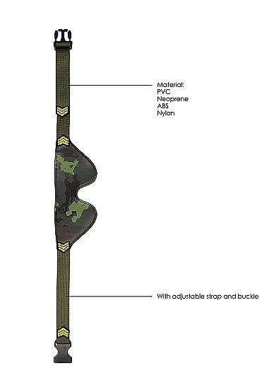 Army Theme - выполненная в необычном стиле маска на глаза закрытого типа для эротических ролевых игр и практик БДСМ. Благодаря своей эргономичной форме, она плотно покрывает область поверх глаз, полностью блокируя поступление света. Материал маски мягкий и приятный на ощупь. Эластичный ремешок надежно удерживает аксессуар на месте, а также обеспечивает универсальный размер.