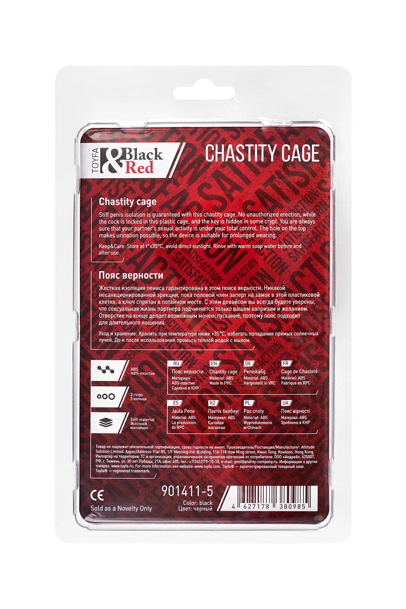 Идеальный инструмент для контроля и доминирования — пояс верности для него. Жесткая изоляция пениса гарантирована в этом устройстве. Никакой несанкционированной эрекции, пока половой член заперт на замок в этой пластиковой клетке, а ключ спрятан в потайном месте. Отверстие на конце делает возможным мочеиспускание, поэтому пояс подходит для длительного ношения. В комплекте три пластиковых кольца разного диаметра, подходящих для разных размеров пенисов и вариантов ношения. С этим девайсом вы всегда будете уверены, что сексуальная жизнь партнера подчиняется только вашим капризам и желаниям. Материал: ABS Цвет: черный