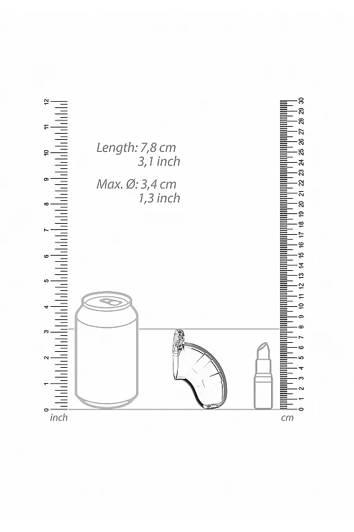 Благодаря легкому, прочному и гипоаллергенному материалу пояс идеально подходит для долговременного ношения. Изделие состоит из нескольких разборных частей: клетки, кольца и штифтов, которые идеально сочетаются друг с другом. В комплекте к поясу идет 4 кольца разных диаметров для разных размеров и предпочтений. Просто выберете подходящий размер кольца, соедините его тремя штифтами, оденьте на средний штифт специальную втулку и соедините с клеткой. На центральном штифте есть специальное отверстие для замка. Выберете один из замков и зафиксируйте пояс. Фиксация тонкой гибкой лентой высокой прочности гарантирует, что металлоискатели на пояс не среагируют.