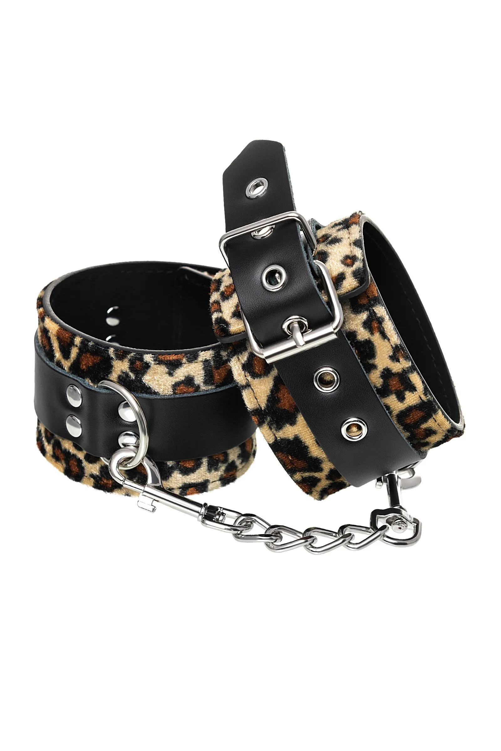 Изготавливаются из натуральной кожи с велюровой подкладой. При изготовлении использована фурнитура с никелевым покрытием. Между слоем основы и подкладой проложена мягкая прокладка. Соединяются между собой коротким ремешком с двумя карабинами на концах. Не нарушают кровообращение, надёжно фиксируются на запястьях. Размер универсальный.