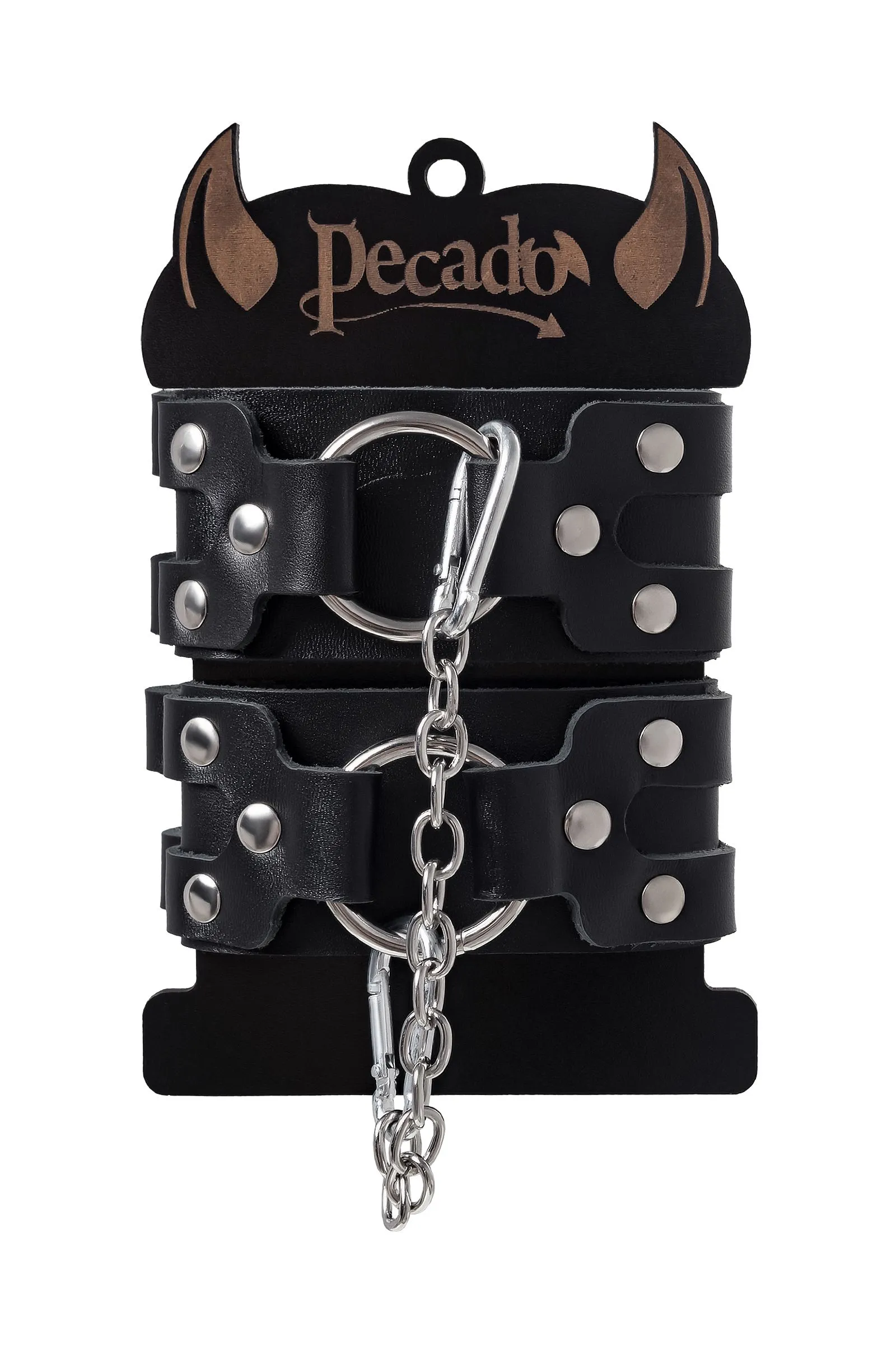 Оковы с двумя ремешками от Pecado помогут обездвижить партнера во время сексуальных прелюдий или жестких БДСМ-играх. Оковы изготовлены полностью из черной, натуральной кожи. Выделка материала произведена вручную. Ремешки и широкая манжета хорошо держат форму: не тянутся и не мнутся. Качественная металлическая фурнитура добавляет лоска изделию, а аромат натуральной кожи повышает градус возбуждения. Благодаря широкому запасу регулировок, можно подобрать необходимый обхват. Аксессуар удобно застегивать и легко расстегивать. При правильном использовании не оставляет следов на теле и не доставляет дискомфорта. Манжеты оков соединяется между собой помощью двух карабинов и съемной стальной цепочки. Подходит и для женских, и для мужских ног. ● 100% натуральная кожа. ● Ручная работа. ● Износостойкий, тактильно приятный материал. ● Надежная высококачественная фурнитура. ● Универсальный размер. ● Длина манжет – 22 см, ширина манжет - 5 см, длина сцепки – 19 см.