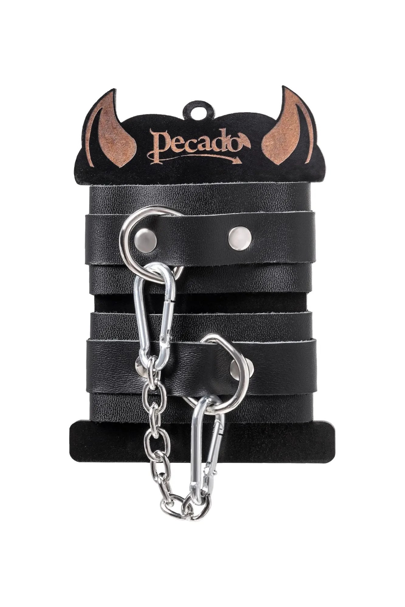Ищите наручники для миниатюрной ручки? Тогда обратите внимание на эту модель от российского производителя Pecado. Они идеально созданы для обладательниц узкого запястья. Каждый элемент аксессуара изготовлен полностью вручную. Мягкий, чёрный материал нежно обхватывает руку и оставляет только приятные ощущения от контакта с телом. Аксессуар декорирован качественной фурнитурой, благодаря которой, при необходимости, его легко снять. Соединяются между собой с помощью короткой стальной цепочки и двух колец с карабинами. При правильном использовании не оставляют следов на теле. А особый аромат натуральной кожи придает пикантности сексуальному атрибуту. Подходит как для начинающих пар, так и для ценителей БДСМ-игр. Погрузитесь в мир пикантных удовольствий! Вместе с Pecado. ● 100% натуральная кожа. ● Ручная работа. ● Износостойкий, тактильно приятный материал. ● Надежная высококачественная фурнитура. ● Универсальный размер. ● Длина манжет – 15 см, ширина манжет – 4 см, длина сцепки – 14 см.
