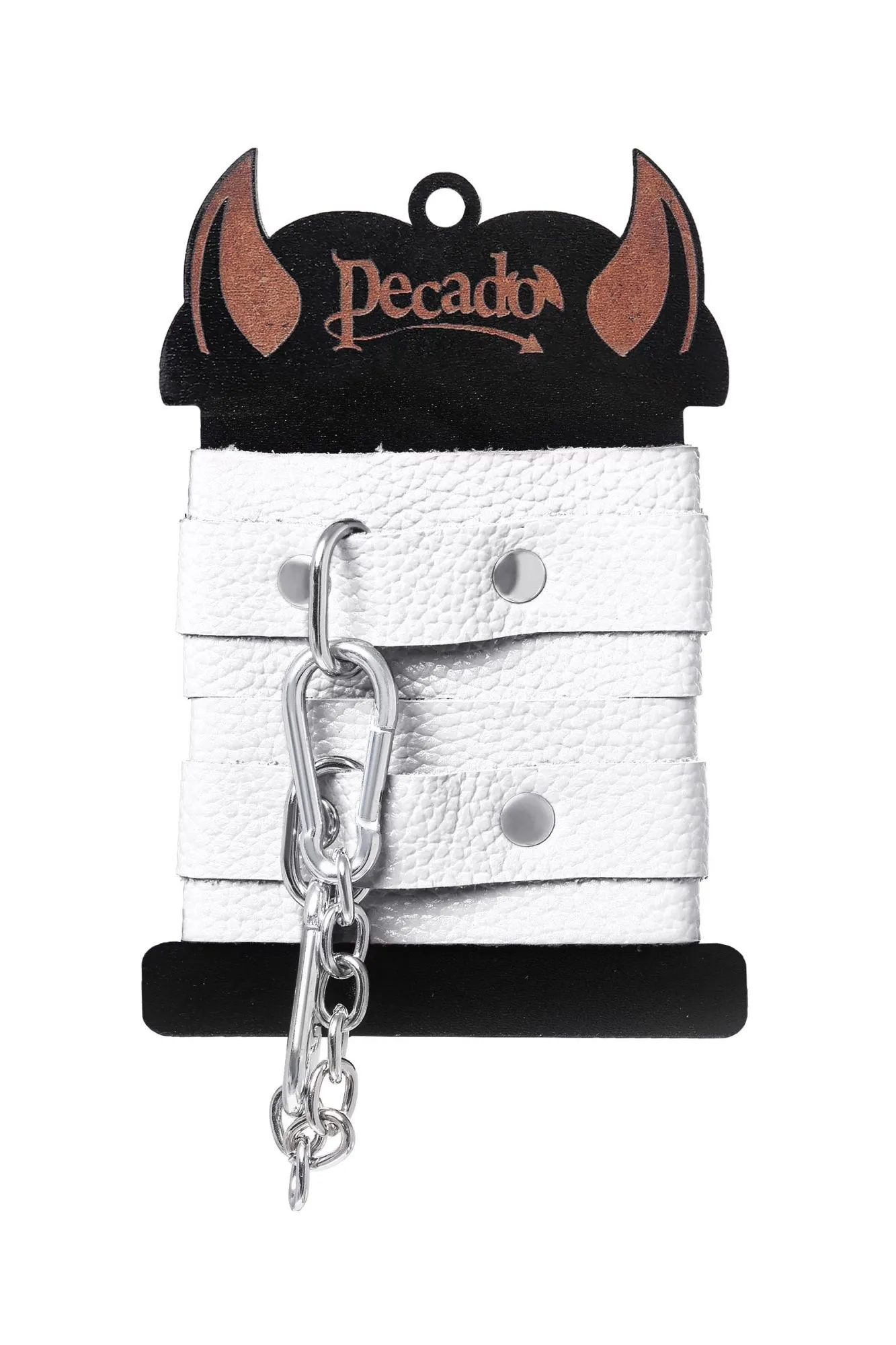Ищите наручники для миниатюрной ручки? Тогда обратите внимание на эту модель от российского производителя Pecado. Они идеально созданы для обладательниц узкого запястья. Каждый элемент аксессуара изготовлен полностью вручную. Мягкий, белый материал нежно обхватывает руку и оставляет только приятные ощущения от контакта с телом. Аксессуар декорирован качественной фурнитурой, благодаря которой, при необходимости, его легко снять. Соединяются между собой с помощью короткой стальной цепочки и двух колец с карабинами. При правильном использовании не оставляют следов на теле. А особый аромат натуральной кожи придает пикантности сексуальному атрибуту. Подходит как для начинающих пар, так и для ценителей БДСМ-игр. Погрузитесь в мир пикантных удовольствий! Вместе с Pecado. ● 100% натуральная кожа. ● Ручная работа. ● Износостойкий, тактильно приятный материал. ● Надежная высококачественная фурнитура. ● Универсальный размер. ● Длина манжет – 15 см, ширина манжет – 4 см, длина сцепки – 14 см.