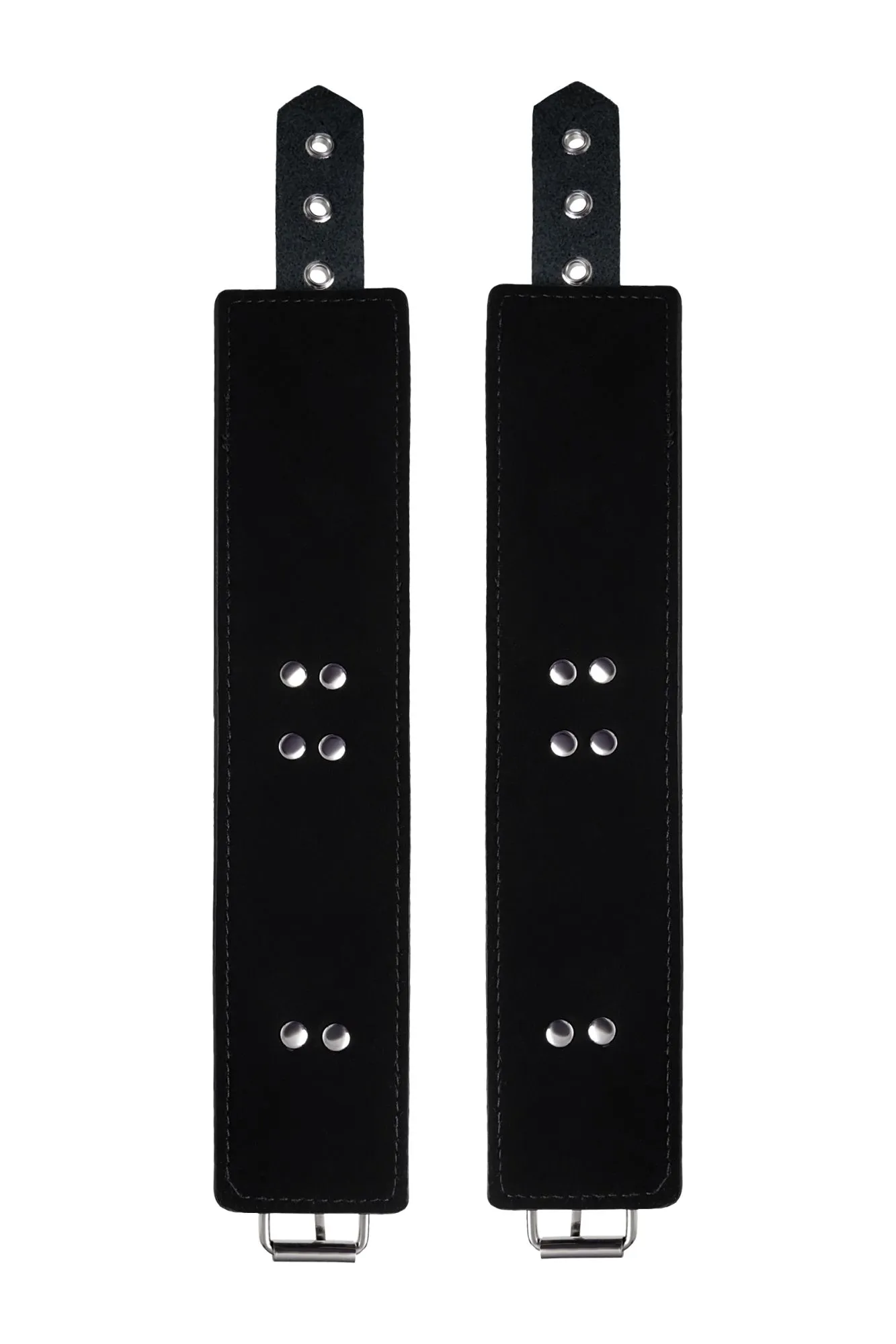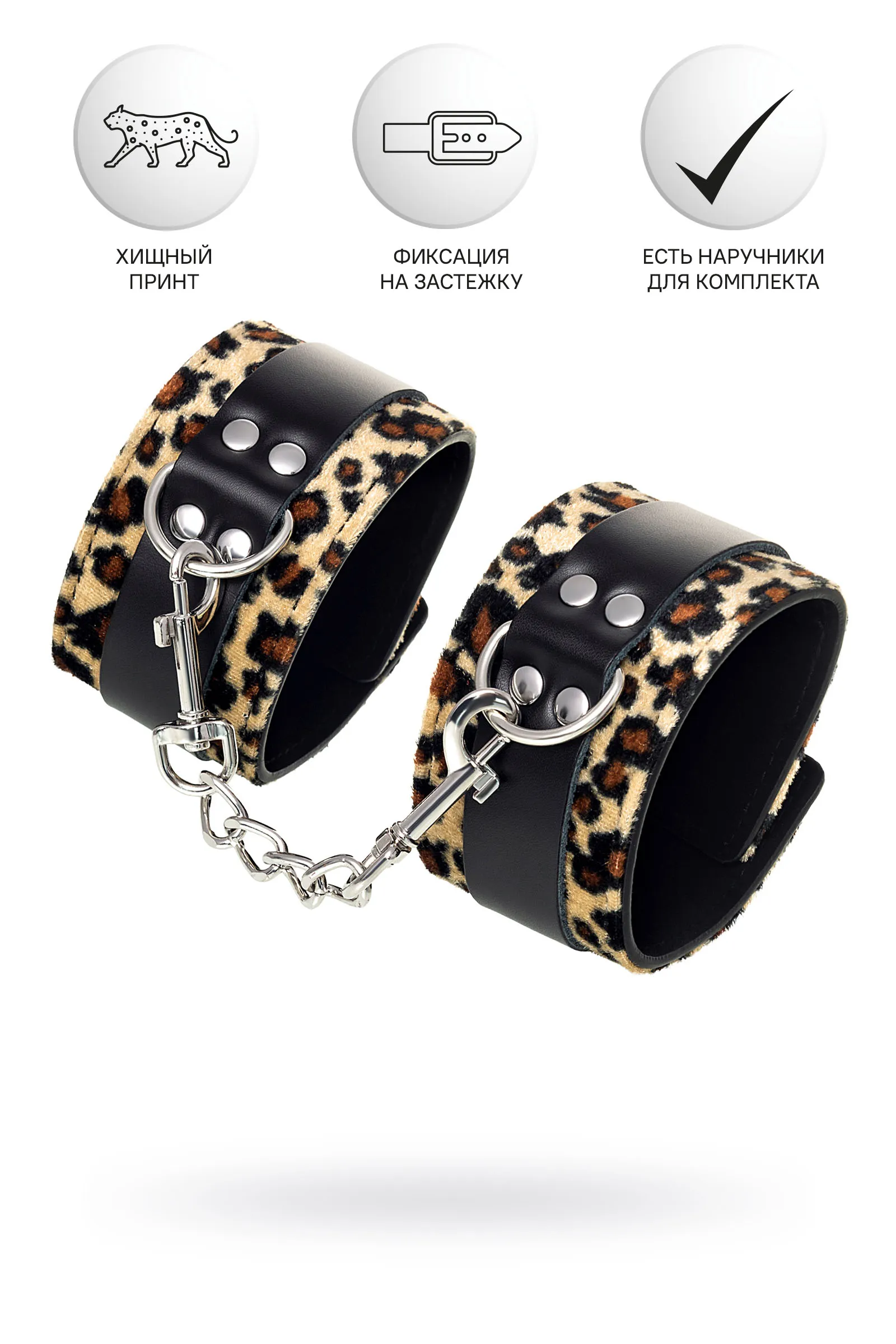Изготавливаются из натуральной кожи с велюровой подкладой. При изготовлении использована фурнитура с никелевым покрытием. Между слоем основы и подкладой проложена мягкая прокладка. Соединяются между собой коротким ремешком с двумя карабинами на концах. Не нарушают кровообращение, надёжно фиксируются на запястьях. Размер универсальный.