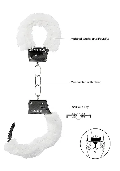 Наручники Beginner's Handcuffs Furry - специализированное приспособление для надежной фиксации и обездвиживания партнера при эротических ролевых играх и практиках БДСМ. Классические металлические наручники с меховой обивкой могут открываться как при помощи ключей, входящих в комплект, так и с помощью механизма непосредственно на них. Кольца соединены между собой короткой неэластичной сцепкой.