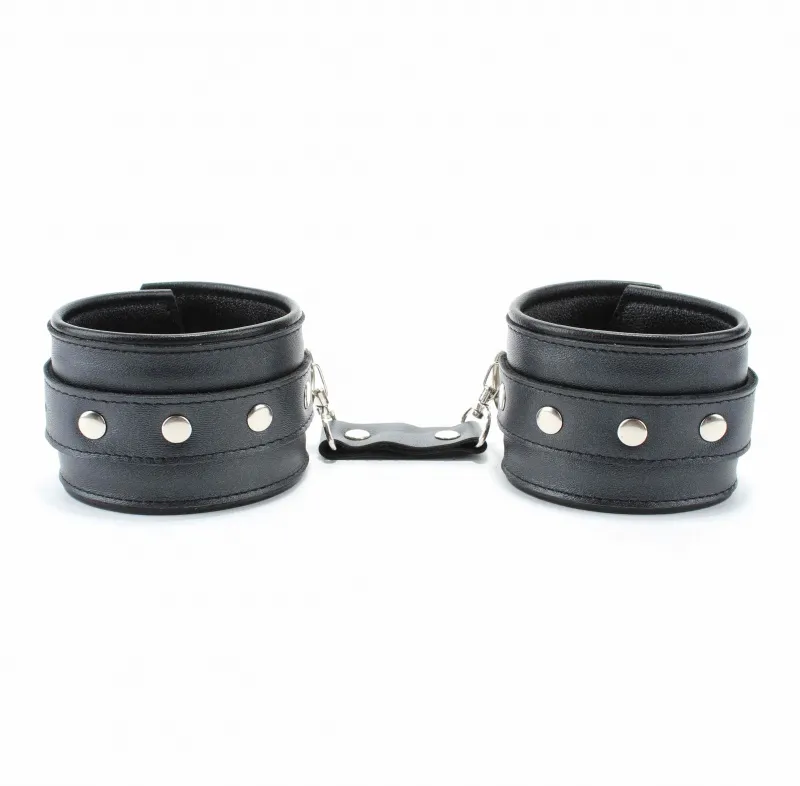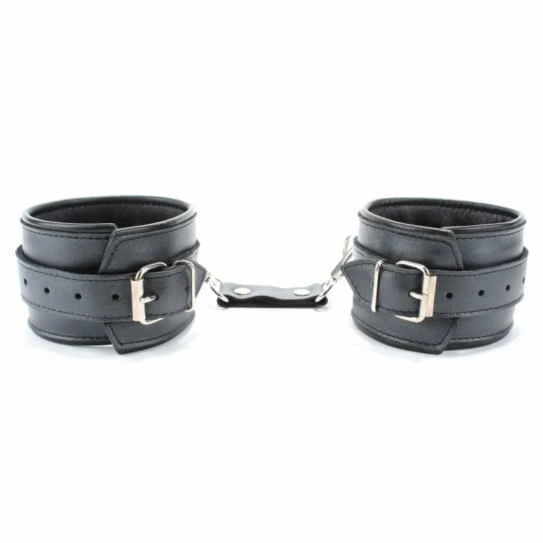 Оживить эротические игры Вам помогут наручники. Этот интимный аксессуар пользуется успехом у мужчин. Выполненные в черном цвете и украшены прочными ремешками. Модный интимный аксессуар не сдавливает и не нарушает кровообращение, так как изготовлен из мягкой кожи. Чтобы любимая никуда не убежала, наручники соединены короткой перемычкой. Ширина оков - 5,7 см, длина оков- 25,5 см, длина перемычки – 6 см. Упаковка: картонная подложка.