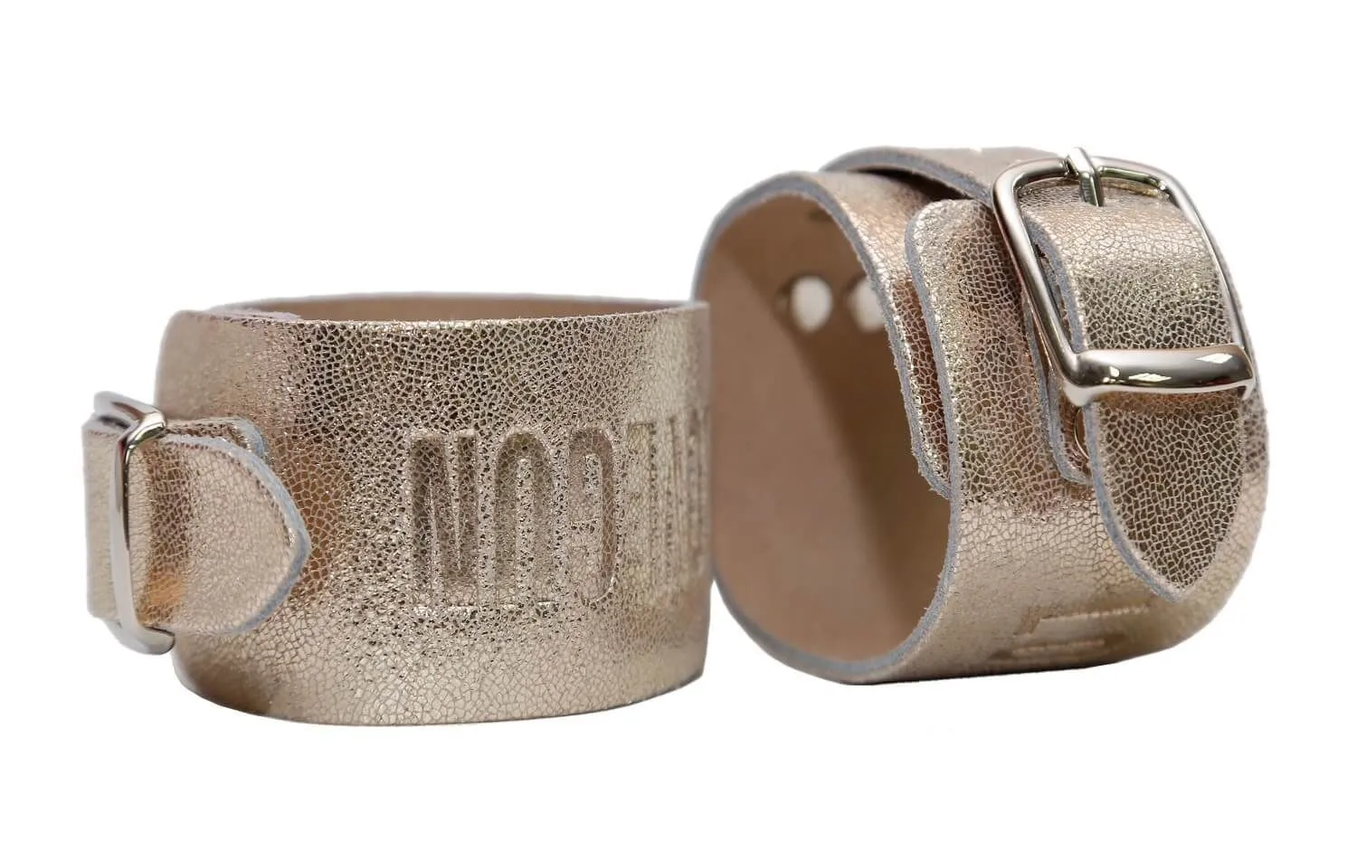 составляет 4 см, соединены с помощью металлических карабинов. Данный девайс не имеет подкладки, но, несмотря на это, он очень удобен в использовании, и во время применения таких оков исключен любой дискомфорт. Регулировать диаметр колец можно с помощью ремешков. Эти наручники отлично разнообразят интимные отношения, а также подойдут для БДСМ-развлечений.