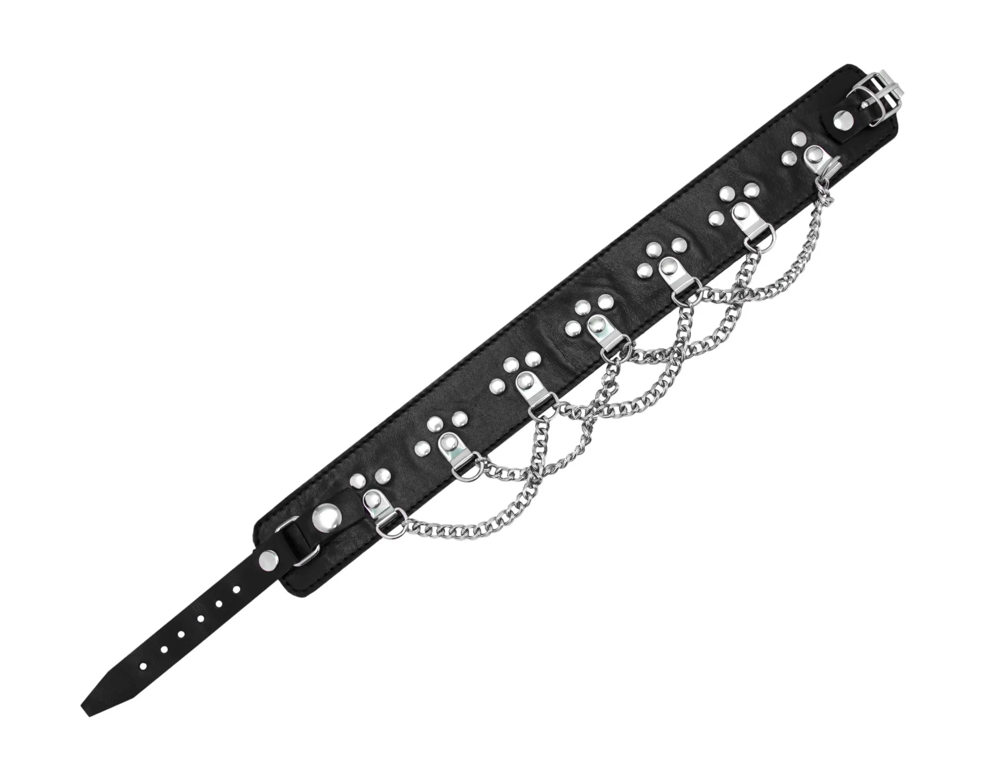 Давно ли Вашу шейку обволакивал подобный приятный и будоражащий кровь аксессуар? Используя ошейник в качестве декоративного дополнения своих сексуальных игр, и оставаясь только в нем, Вы соблазните любого, кто окажется с Вами в постели. Ошейник украшен металлическими вставками и цепочками, что позволит посадить любимого на поводок и управлять им и его ощущениями. Подчините партнера и обострите его ощущения.