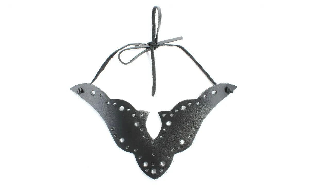 Чокер выполнен из натуральный черной гладкой кожи. Аксессуар фиксируется шнурком сзади, размер универсальный.Резной узор и оригинальная перфорация прекрасно подчеркнет вашу индивидуальность и станет очень изысканным дополнением к образу. Материал: натуральная кожа Цвет: черный
