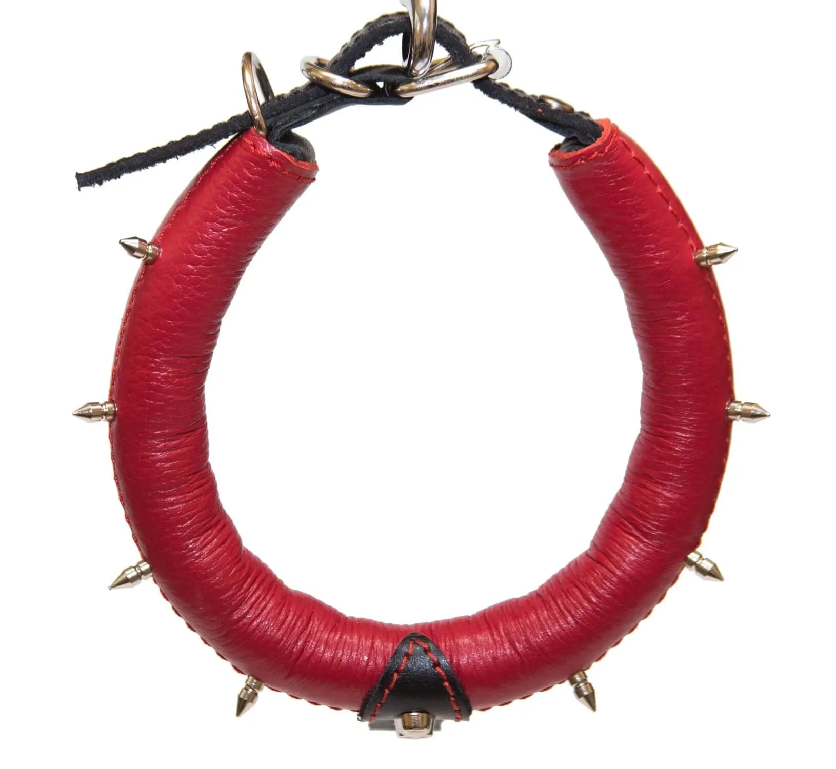 Поклонникам ролевых интимных игр придется по вкусу красный кожаный ошейник. Он декорирован металлическими шипами и небольшим черепом, благодаря которым он выглядит невероятно эффектно. У ошейника есть небольшое колечко, за которое его можно пристегнуть к поводку (в комплект не входит) за небольшой карабин, чтобы добавить играм еще большее разнообразие. Изделие прекрасно подойдет для БДСМ развлечений и позволит реализовать самые нескромные сексуальные фантазии.