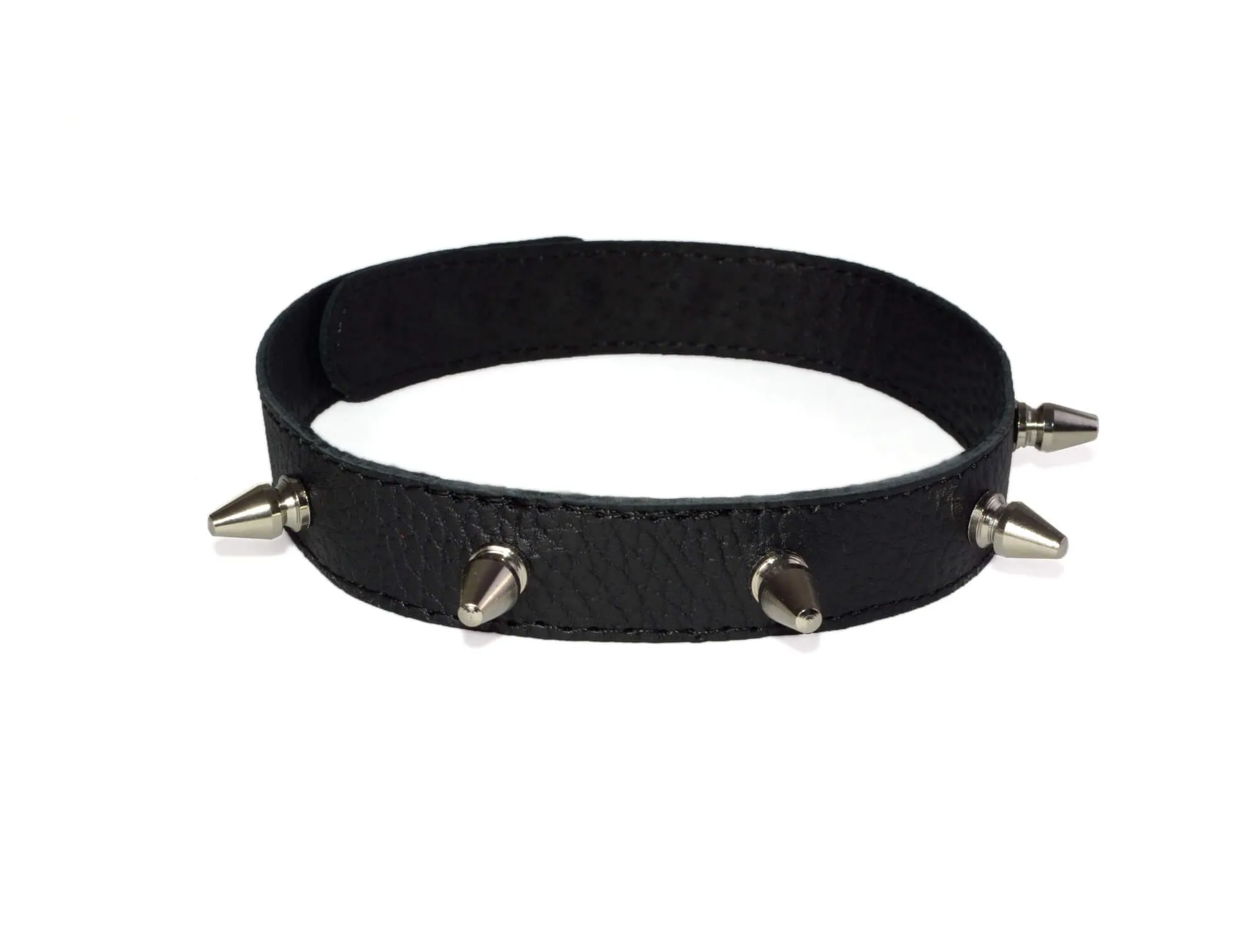 Ошейник с шипами от бренда Sitabella выполнен из натуральной кожи черного цвета и декорирован металлическими шипами длиной 1.2 см. Внутренняя часть выполнена из велюра, благодаря чему носить его будет комфортно. Размер ошейника универсальный и регулируется при помощи кнопок.