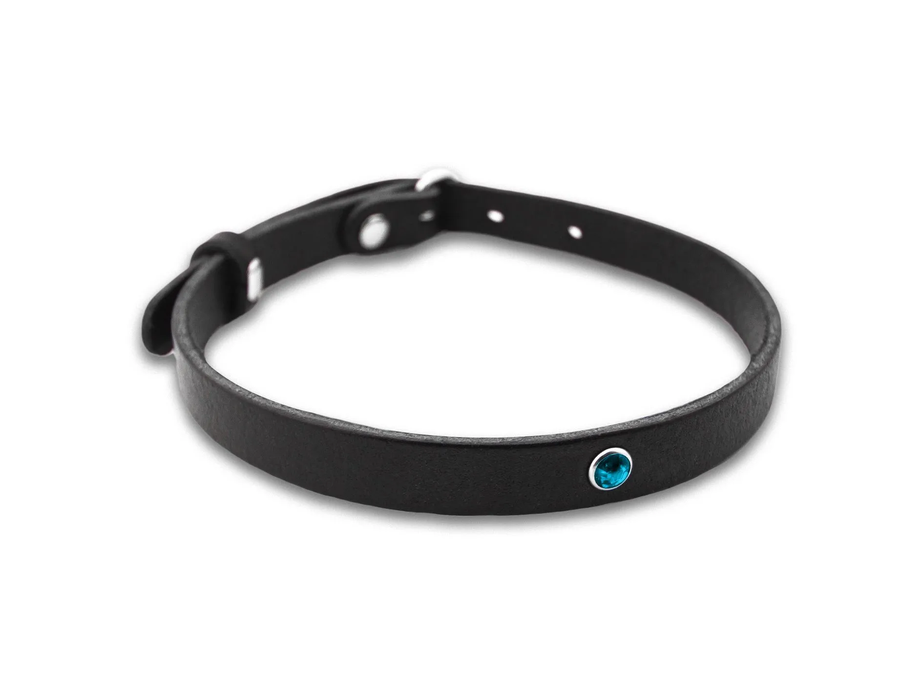 Чокер черного цвета с синей стразой из натуральной кожи будет прекрасным украшением, которое подчеркнет Ваш индивидуальный стиль и акцентирует внимание на прекрасной шейке. Также он сможет послужить Вам во время ролевых игр с элементами БДСМ, это заметно разнообразит Ваши любовные игры и позволит испытать новые будоражащие ощущения.