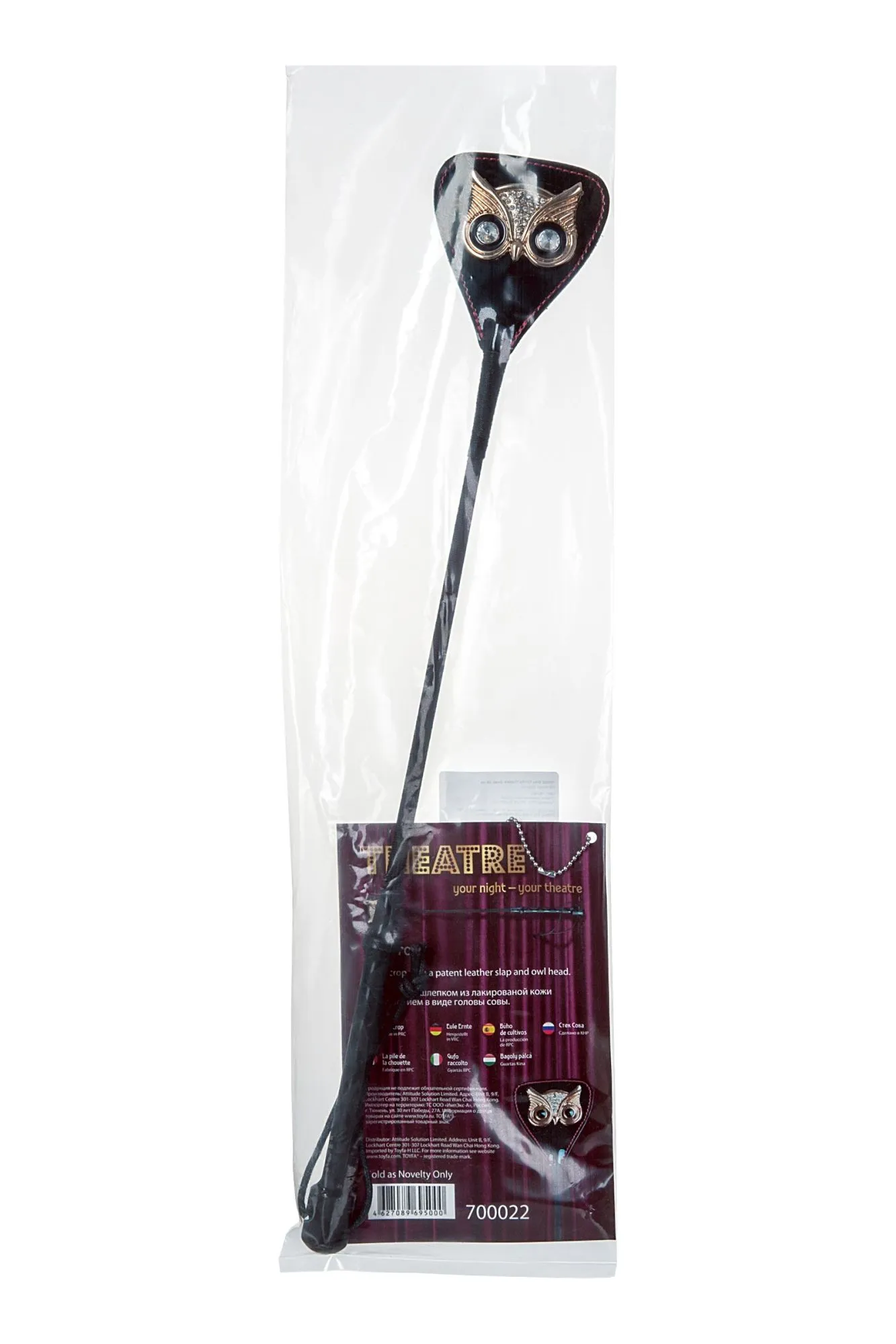 Стек 55 см со шлепком из лакированной кожи и украшением в виде головы совы выглядит очень стильно. Но очаровывающий внешний вид этого приспособления не должен вводить в заблуждение — аксессуар предназначен для умеренных и сильных воздействий. Конечно, им можно и нежно поглаживать партнёра. Или использовать для антуража в ролевых играх. Этот стек справится с любой задачей и выведет на новый эмоциональный уровень!