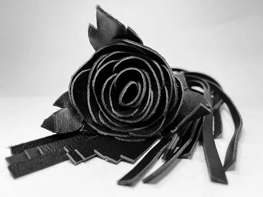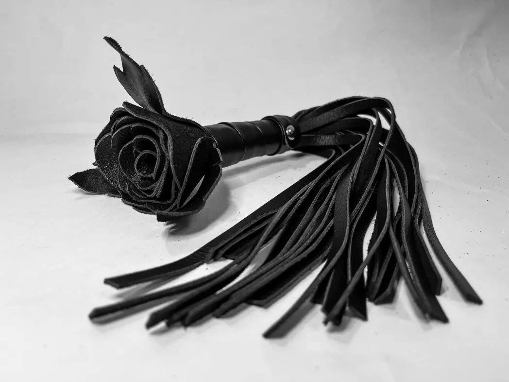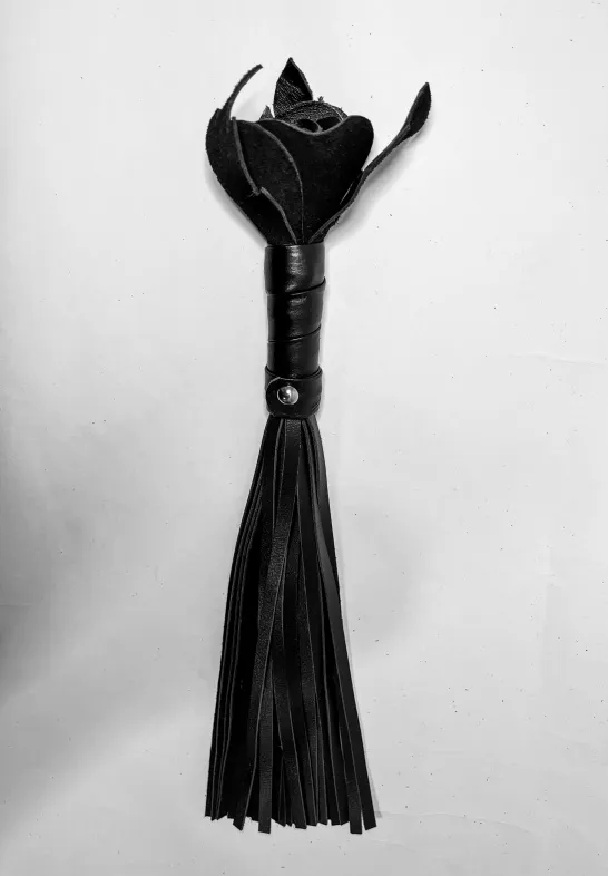 Восхитительная мини-плеть, украшенная чёрной розой. Цветок, рукоятка и хвосты плети полностью выполнены из натуральной мягкой кожи. Размеры этой плети очень изящны- общая длина всего 40см, поэтому данную плеть можно использовать, как генитальную, чтобы добавить новых ярких ощущений. Розочка очень удобно лежит в руке и создает неповторимую атмосферу и настроение, этот аксессуар никого не оставит равнодушным!
