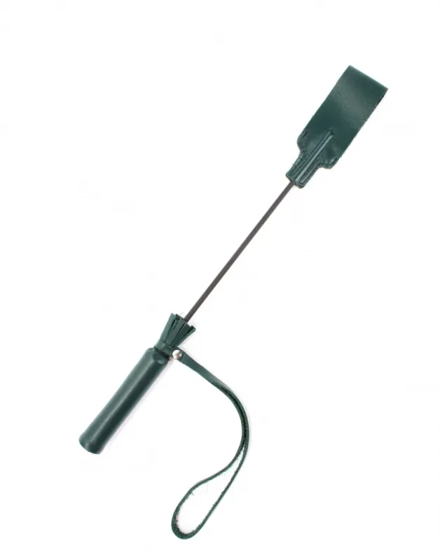Рукоятка стека из натуральной кожи изумрудного цвета, на конце девайса расположен кожаный шлепок. Легкий, гибкий, практичный стек уменьшенного размера доставит максимальное удовольствие партнерам от БДСМ игры.