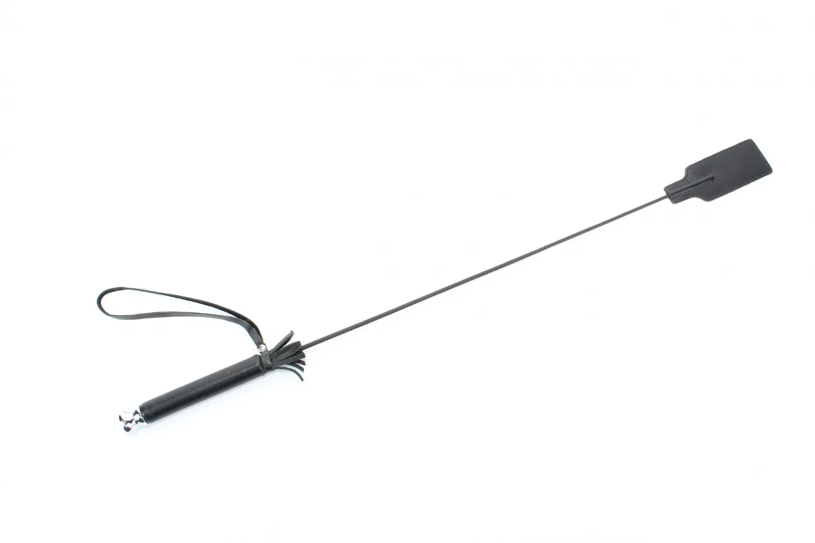 Черный стек освежит и разнообразит Ваши отношения. Эта секс-игрушка сделана из кожи, подходит для новичков. Шлепок на конце девайса воспитает дерзкого и непослушного партнера. Стек обеспечит Вас новыми пикантными ощущениями. Безудержная сексуальная игра станет еще откровеннее, а Вы – более раскрепощенными. Секс-игрушка откроет Вам просторы истинного БДСМ. Характеристики: цвет – черный, материал- кожа, общая длина- 66 см, длина наконечника- 11 см, ширина наконечника- 4 см.