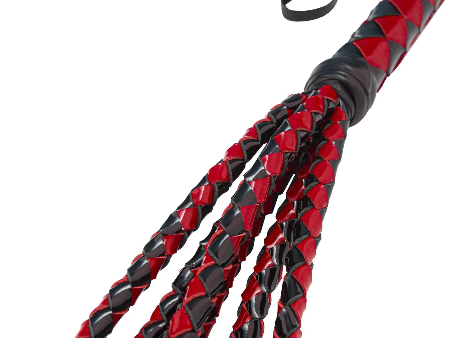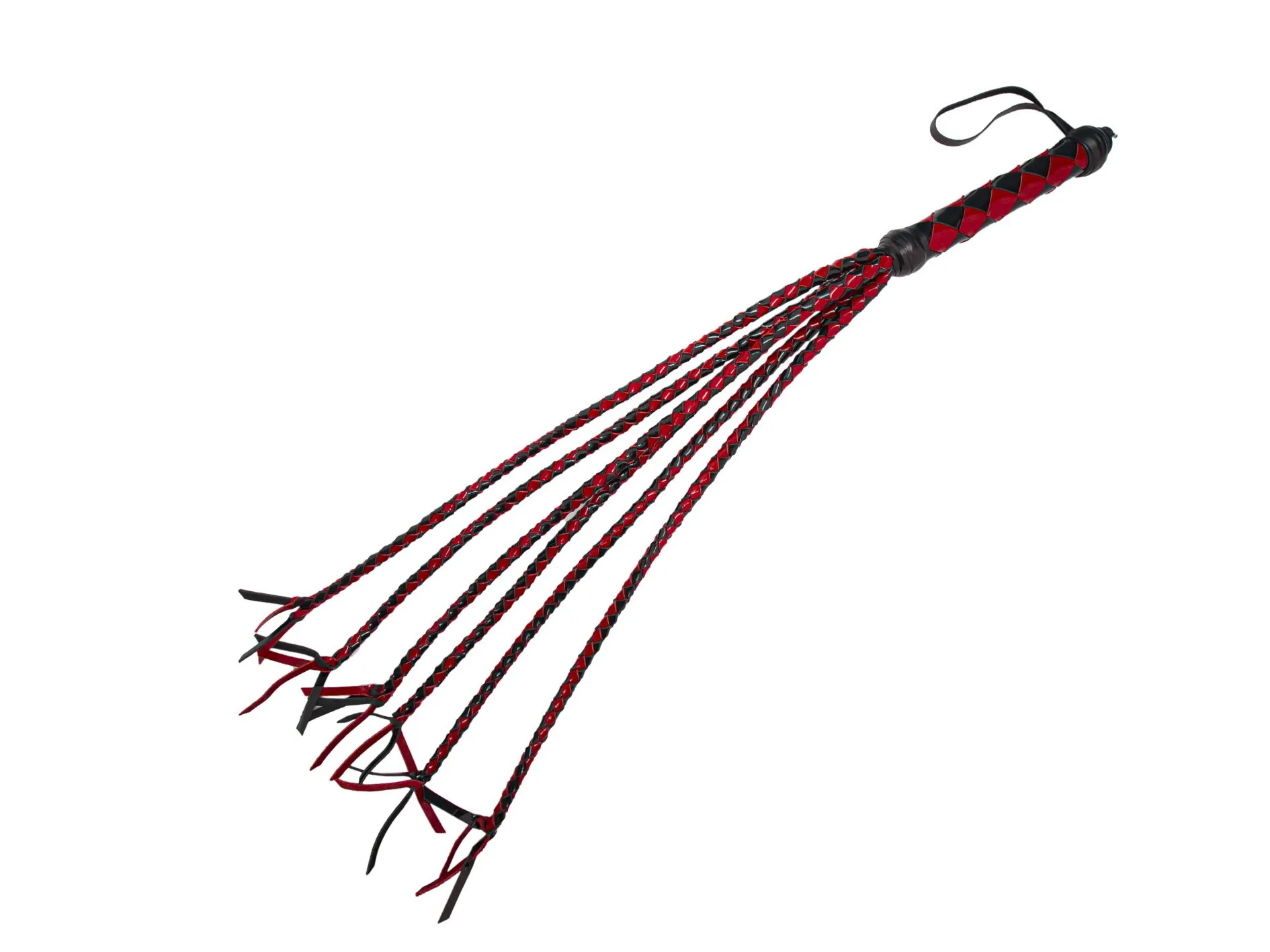 Плеть многохвостка выполнена из лаковой натуральной кожи в черно-красной цветовой гамме. Состоит из плетенной ручки и 6 хвостов круглого плетения. Хвосты заканчиваются "кисточками" сплетенными особым способом без узлов. На рукоятке имеется петля для фиксации на руке. Имеет достаточно большую площадь соприкосновения с телом при ударе, но, по сравнению с флогером, оказывает более сильное воздействие при той же силе, так как имеет особое плетение хвостов. Применяется на уже разогретом теле.