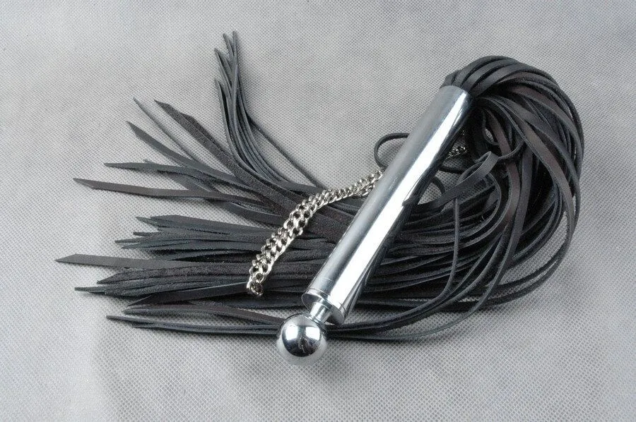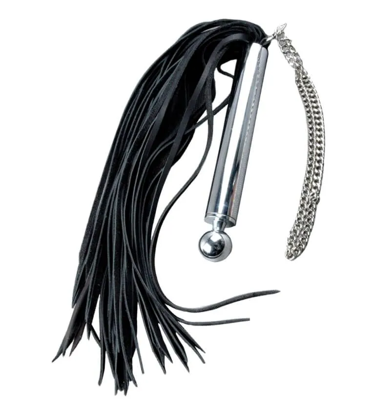 Плетка "Серебряная мечта" от бренда Beastly сможет доставить обоим партнерам острое удовольствие во время интимных игр с элементами БДСМ, несмотря на свой изысканный вид. Наносите плеткой чувствительные удары для разогрева партнера или накажите его со всей строгостью. Ее хвост сделан из 50 полос мягкой натуральной кожи черного цвета, а ручка с круглым навершием - из хромированного металла. На ручке есть отстегивающаяся цепная петля на карабине для фиксации на запястье.