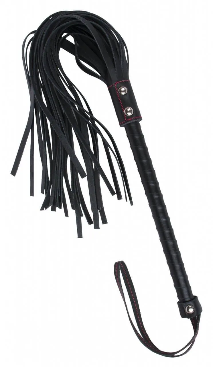 Плеть от бренда Fire Horse выполнена из натуральной черной кожи и декорирована контрастной красной отстрочкой. На конце рукоятки есть удобная петелька для фиксации плети на запястье. Такой аксессуар подарит паре множество новых ощущений во время любовной игры с элементами БДСМ и позволит расширить свои представления о разных видах удовольствия. Наносите удары со всей страстью, чтобы наказать партнера, или же нежно поглаживайте его хвостами плетки, возбуждая до предела.