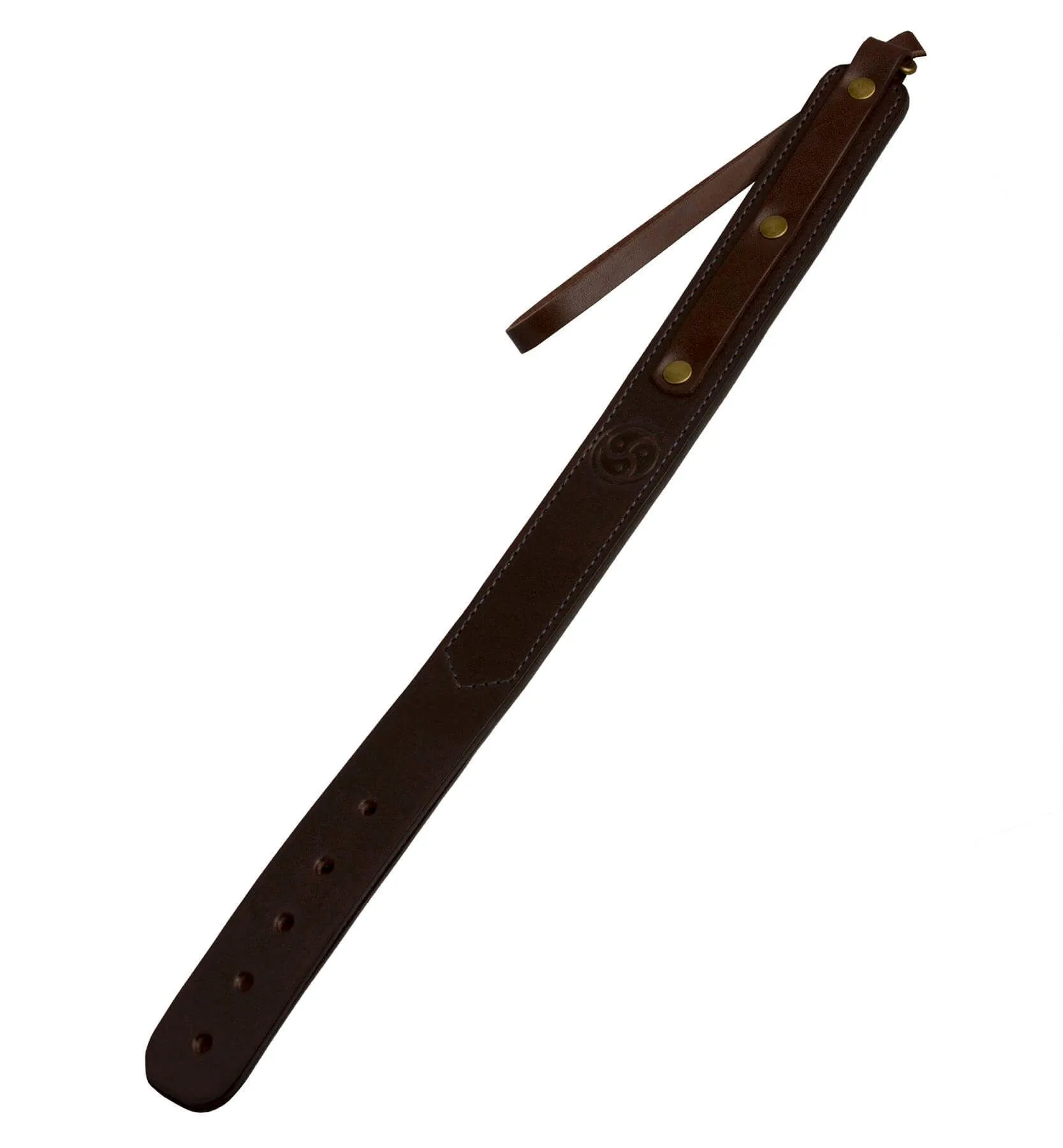 Спанкер сделан из натуральной кожи коричневого цвета из двух сшитых между собой полотен. У него есть петелька для запястья. Во избежание травм не рекомендуется наносить удары ребром.