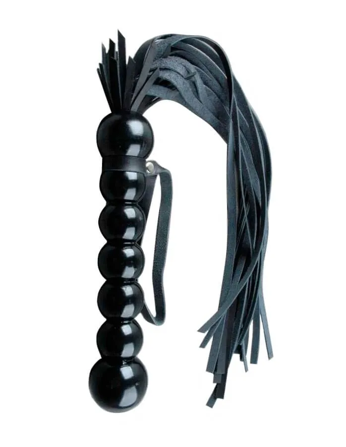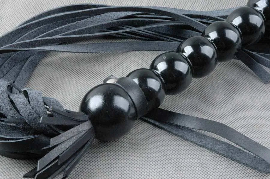 Плетка "Лоли-Попс" от бренда Beastly сделана из натуральной кожи черного цвета и оснащена фигурной ручкой из дерева. Ручка покрыта лаком и состоит из 7 шариков, на ней есть кожаная петелька для фиксации на запястье. В хвосте 20 полос мягкой кожи с прямым резом на концах. Используйте такой аксессуар во время игр с элементами БДСМ, чтобы наказать партнера чувствительными ударами или возбудить его нежными прикосновениями к коже.