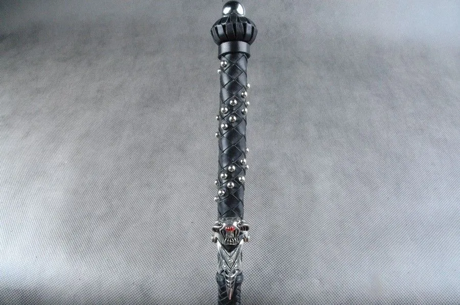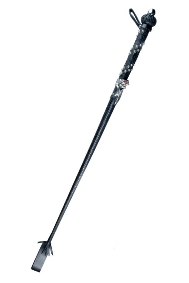 Стек с гибким стержнем на конус "Демонайзер" от бренда Beastly сделан из натуральной кожи черного цвета и утолщен в районе рукояти. 8-плетение «ромбом» переходит в 16-полосное «елочкой». Он украшен двумя рядами металлических элементов и ограничительным когтем сверху. Его ручка декорирована металлическим шаром и ограничительной бобышкой в виде фонарика, также на ней есть петля для подвеса. На конце стека находится шлепок с юбочкой длиной 8 см, каждый удар которого доставит Вам или Вашему партнеру острое удовольствие.