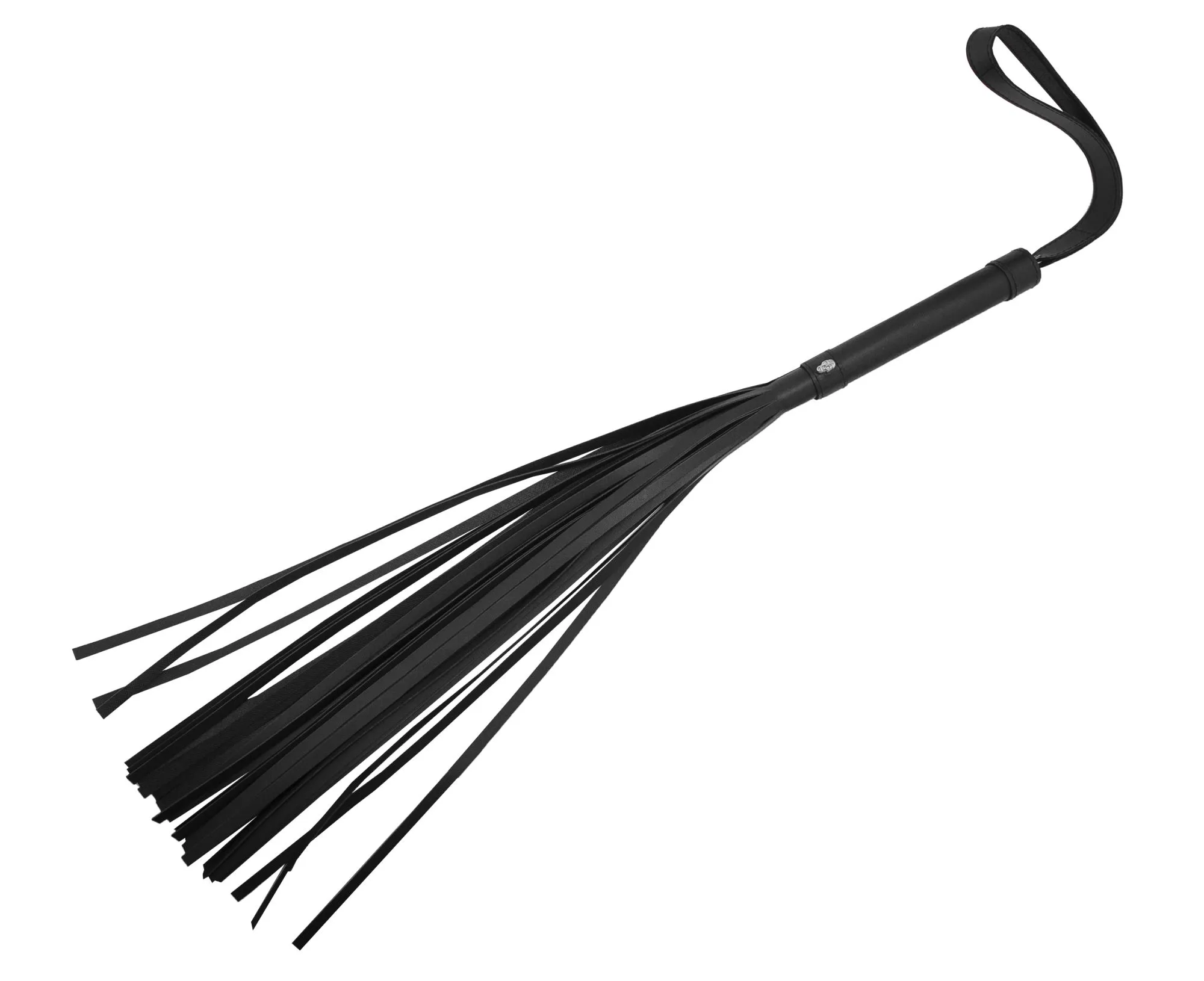 Плеть выполнена из кожи черного цвета. На ручке имеется череп, а также кожаная петелька для запястья, благодаря которой плеть не выскользнет из Ваших рук.