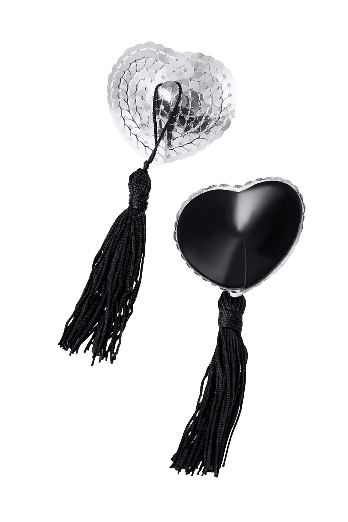 Наклейки на соски многоразовые. С контрастной кисточкой. Конус выполнен из полиуретана, внутри — слой силиконового геля. Декор: пайетки, текстильная кисточка. Размер основания: 5 см. Длина кисти: 11 см. Наклеивать на чистую кожу без следов косметических средств. Снимать осторожно. После использования внутреннюю сторону промыть теплой водой. Хранить, изолировав клейкий слой пленкой или приклеив к стеклянной поверхности (зеркалу). Не использовать при гиперчувствительности к силикону, нарушениях пигментации или повреждениях кожи груди.