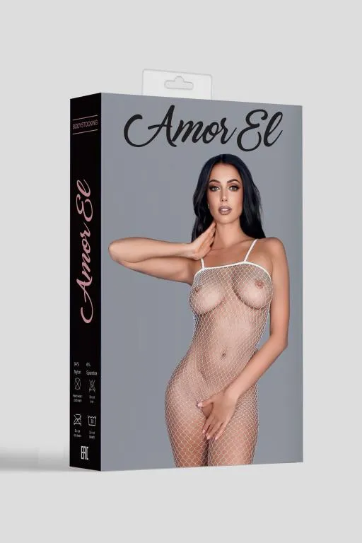 Боди-комбинезон на бретельках с открытым доступом. Дизайн выполнен в виде крупной сетки.
